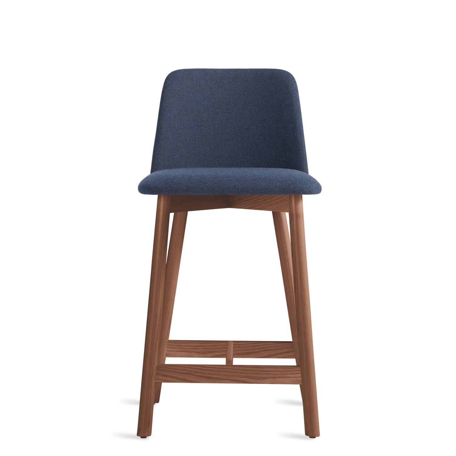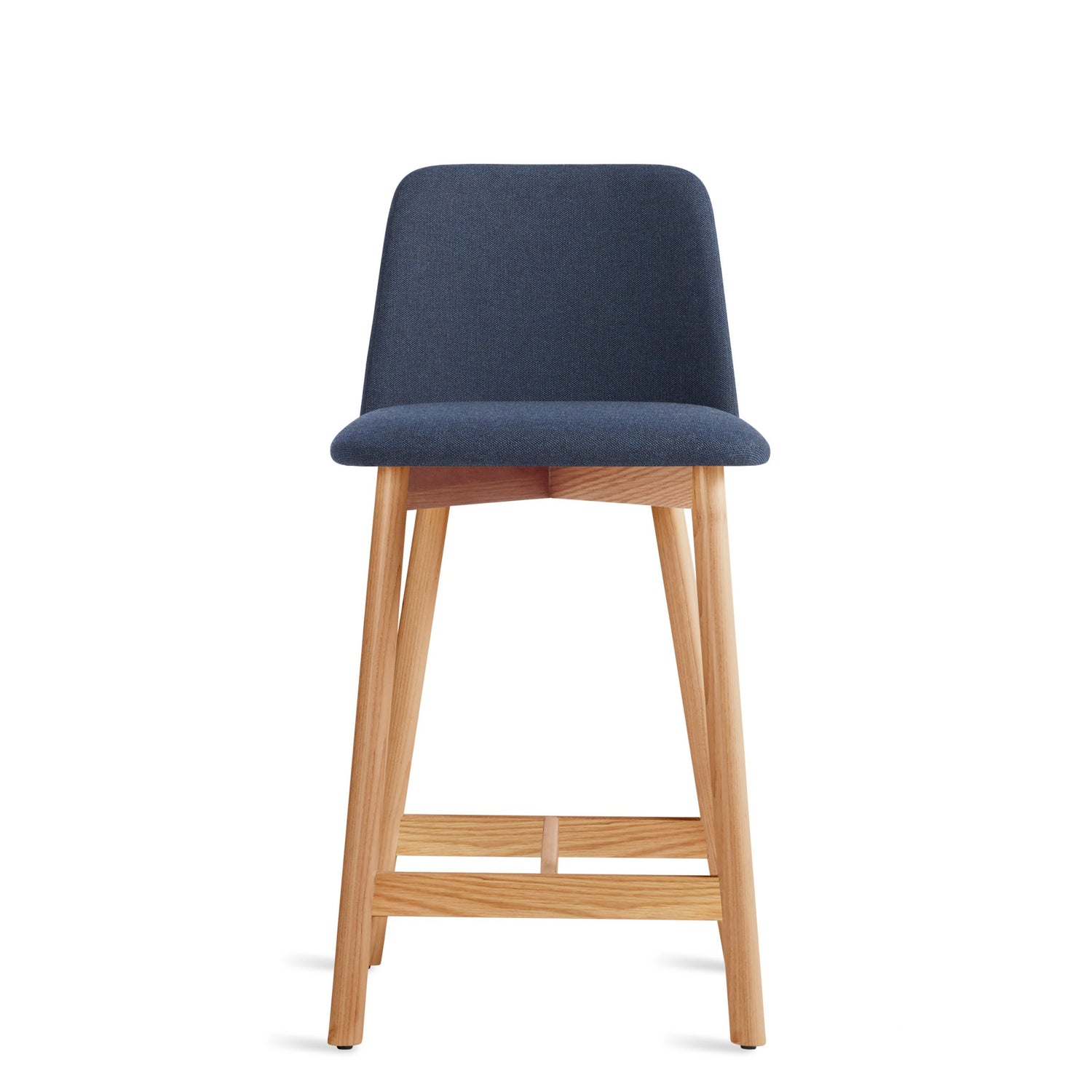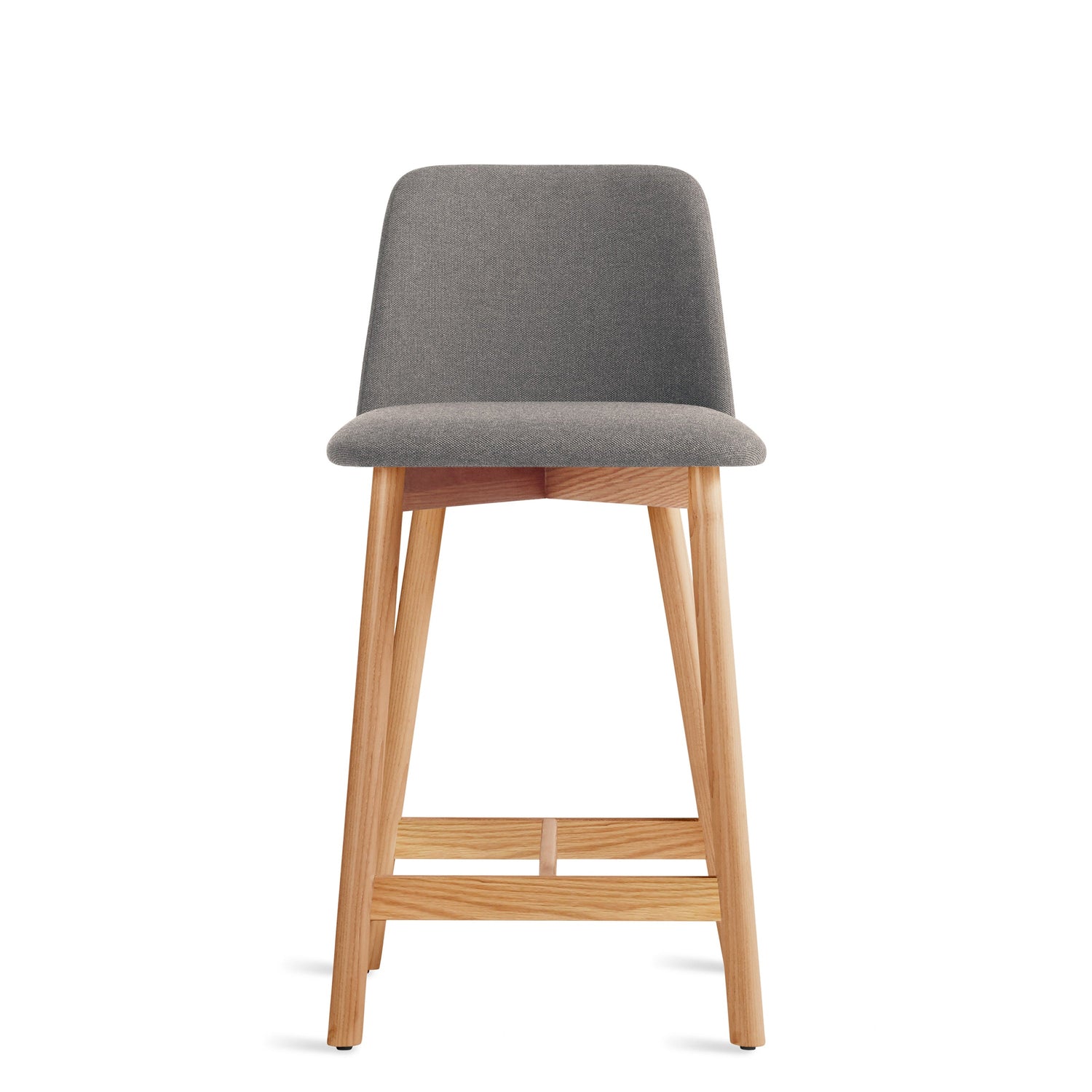 The Chip Stool by Blu Dot is a modern stool. Tailored with solid ash or white oak and durable polyester upholstery, this versatile piece welcomes guests with its foam wrapped seat and contoured backrest.