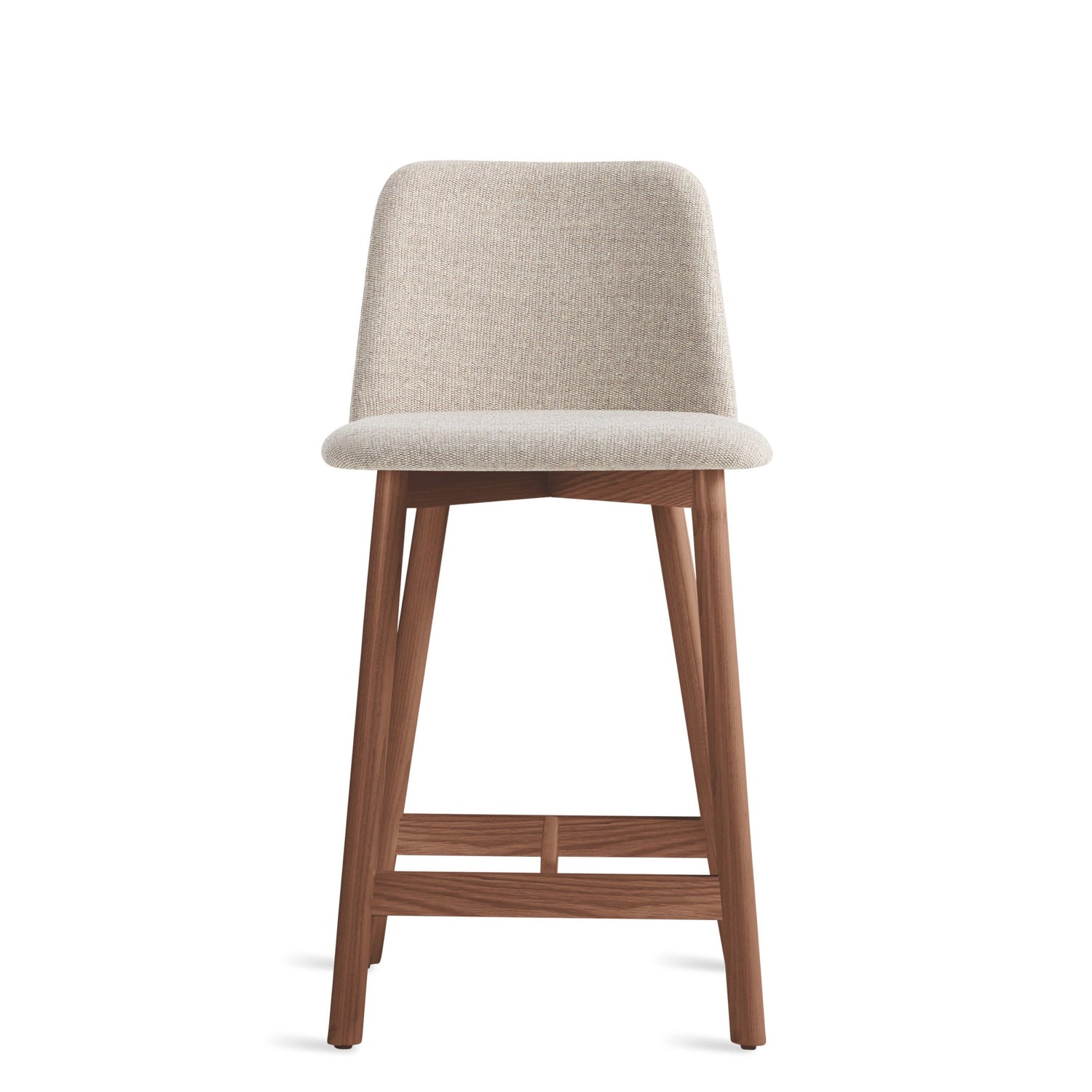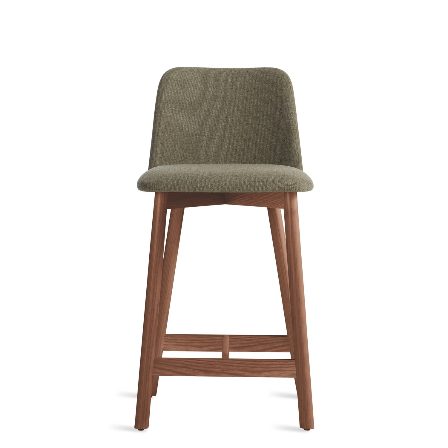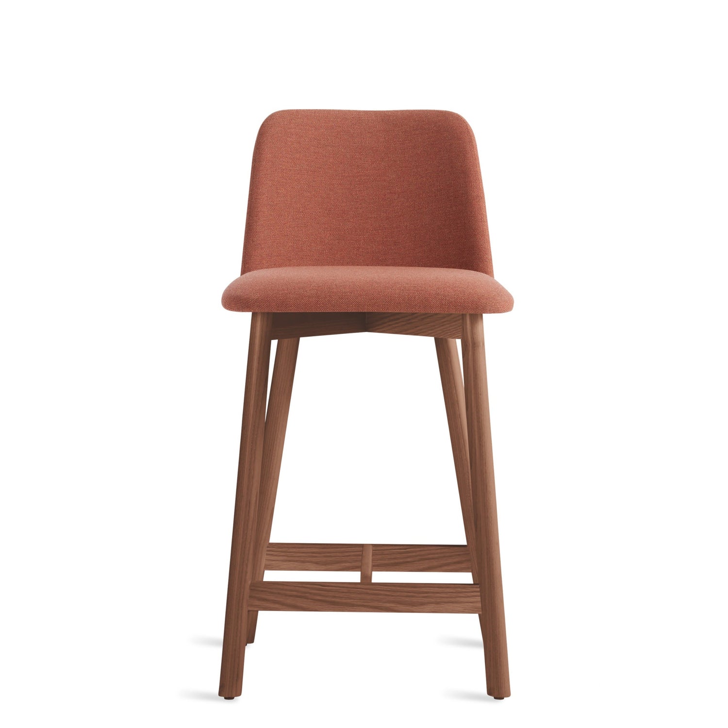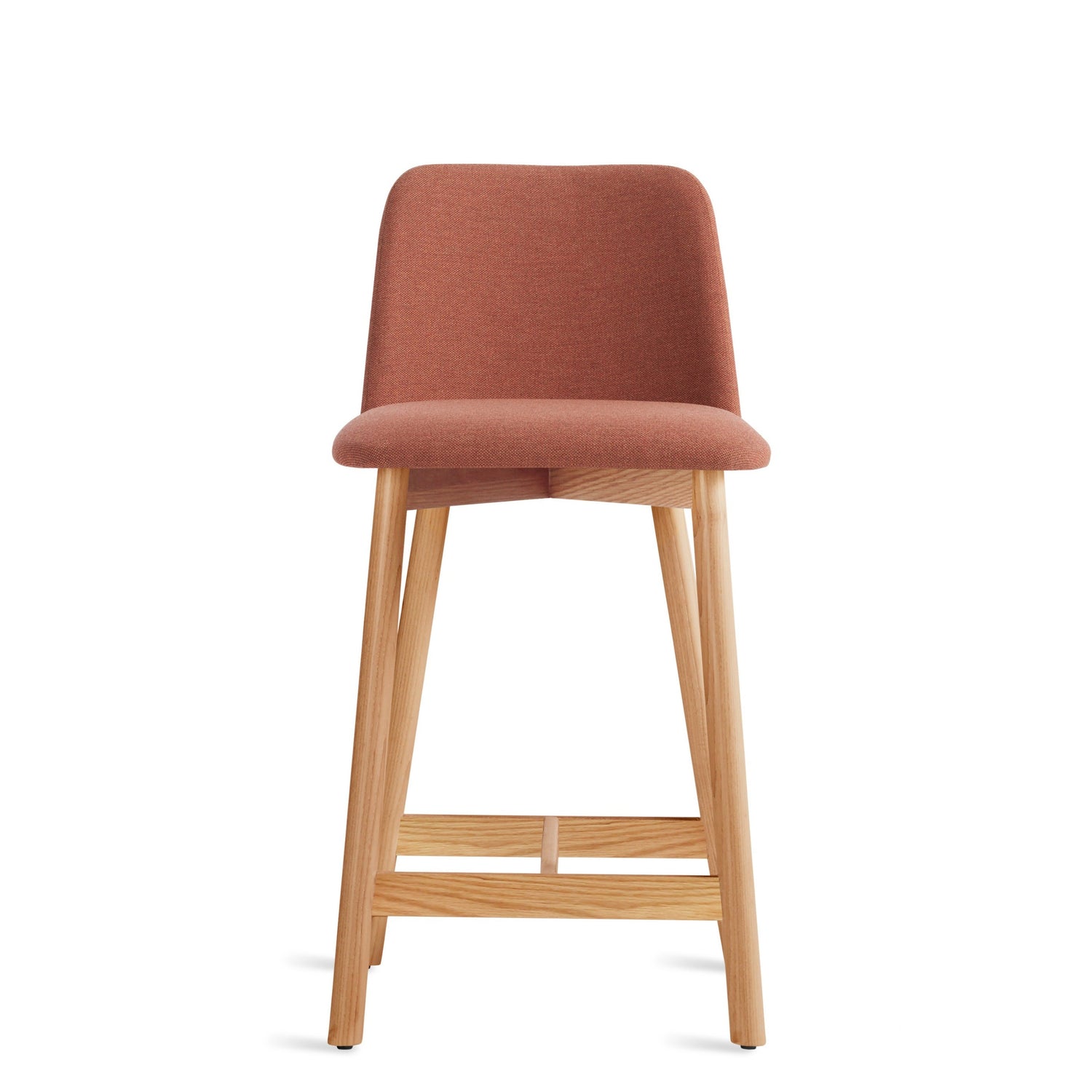The Chip Stool by Blu Dot is a modern stool. Tailored with solid ash or white oak and durable polyester upholstery, this versatile piece welcomes guests with its foam wrapped seat and contoured backrest.