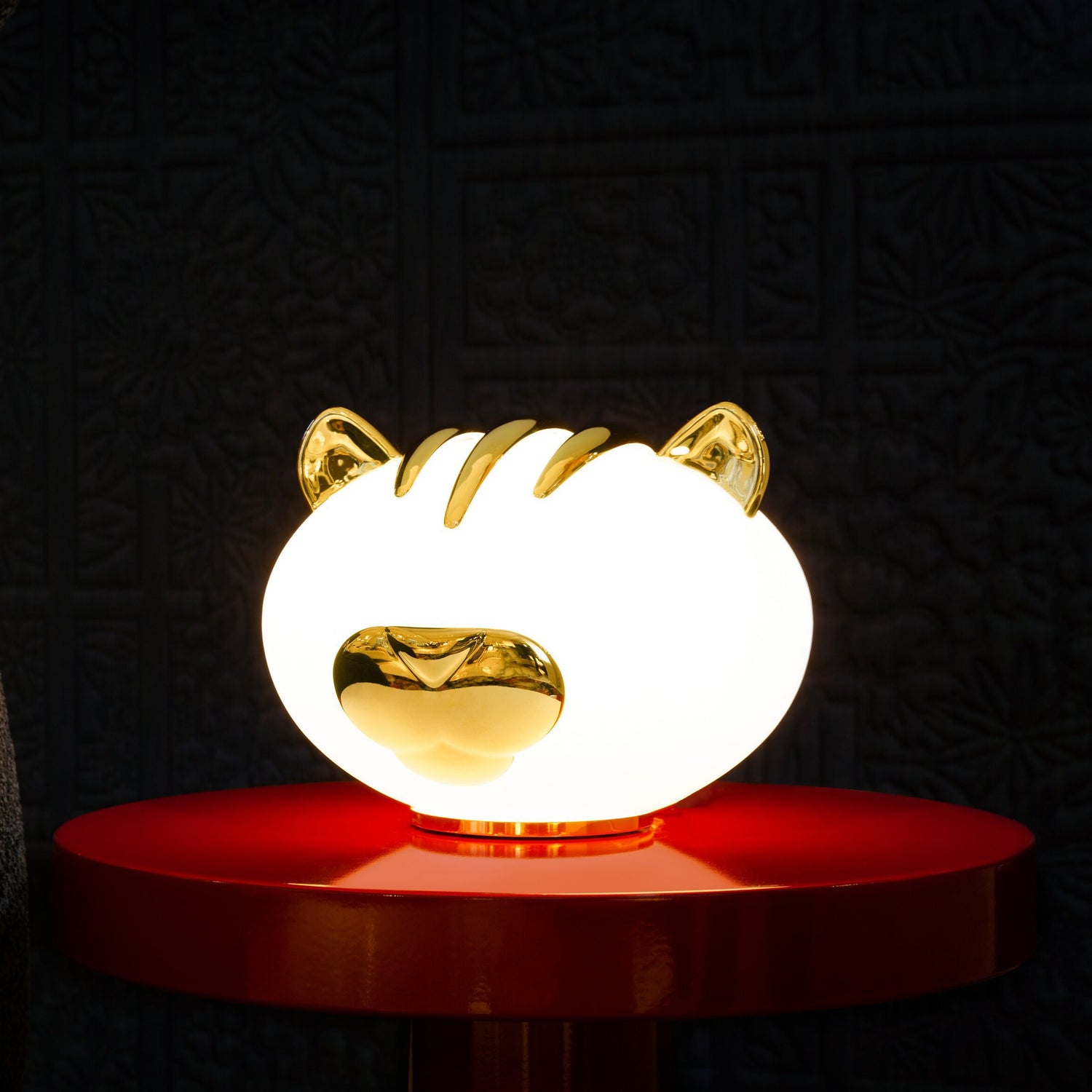 Uhuh, Purr, Noot Noot, & Grwoww are a series of table lamps by Marcel Wanders studio. Each pet has its very own personality and characteristics, but they're all rounded, endearing and elegant. The CU Pet Lights find their place in any kind of interior and space. With frosted glass bodies and heads decorated with touches of ceramic gold, they emit a heart-warming glow you can dim to match the hour of the day. Choose your favourite character, penguin, rabbit, tiger and an owl, and enjoy a glowing pet with heaps of charm!