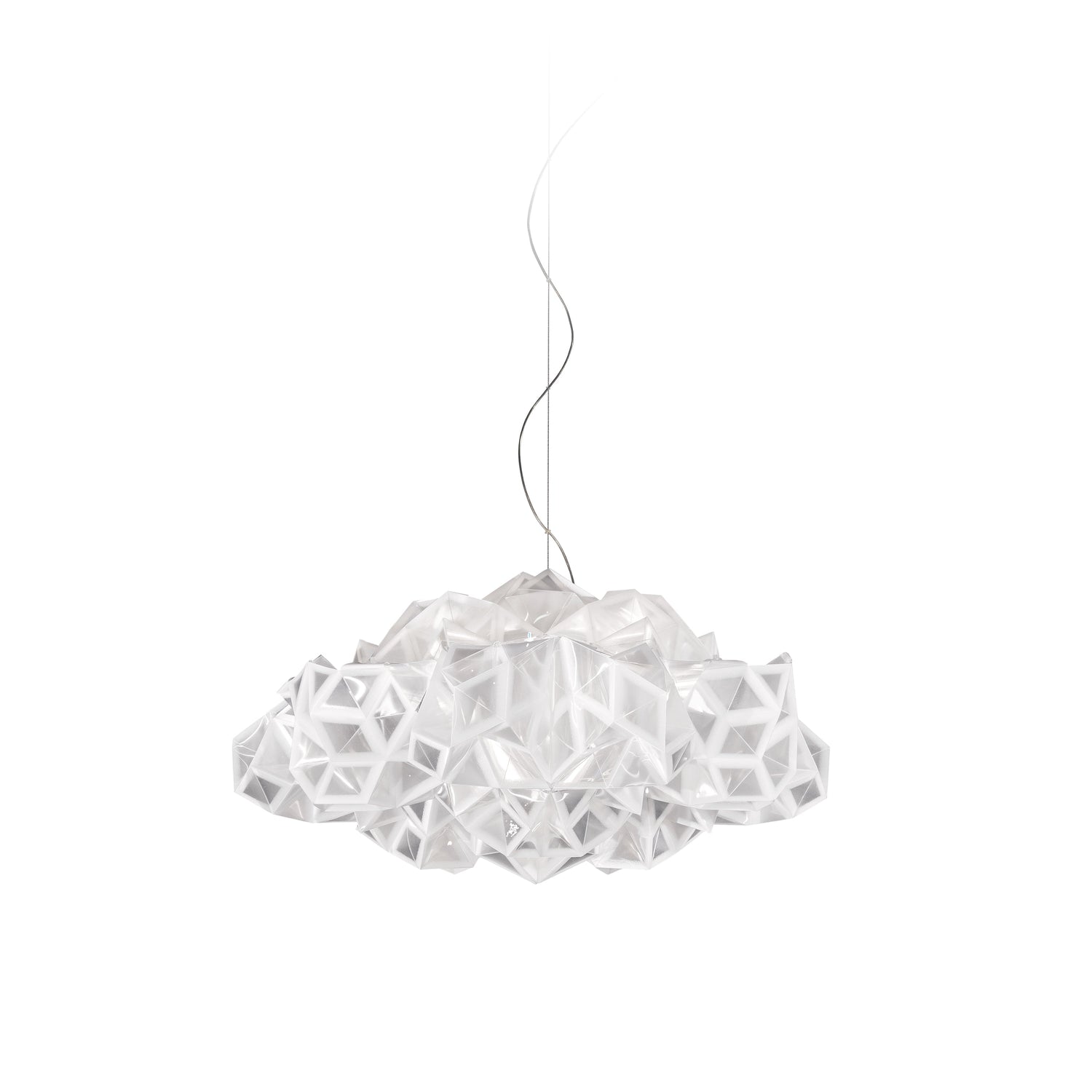 Drusa draws inspiration from crystals poking out from crevices in the rocks; they exhibit an ever-changing, poetic and multiform kaleidoscope when hit by the light. The contemporary, chromatic angles accentuated by Lentiflex finished with a Velvet print, are muted by the central light source, that not only gives depth to the design, but creates harmony between light and shape. Drusa, resembling a diamond, is available in suspension and ceiling versions, and with its infinite chromatic shades, brings a fresh, trendy feel to any space.