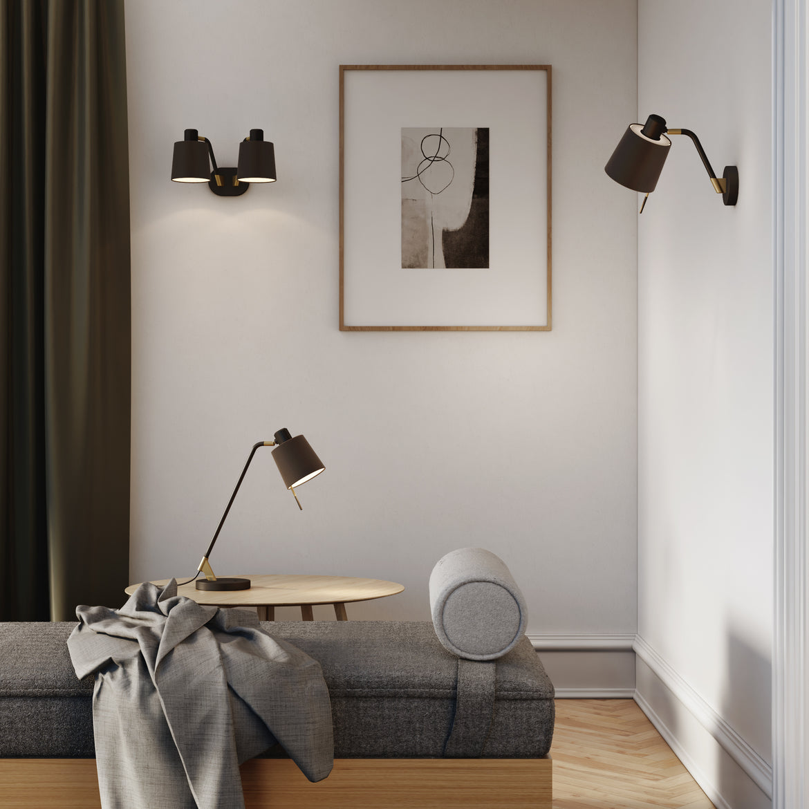 A robust piece for desks and home offices, the Edward Desk Lamp from Astro Lighting brings clean, fluid lines, and contemporary design to your favorite interior spaces. Crafted from zinc and steel and featuring a neutral, matte finish, this desk lamp offers a fully adjustable shade to direct the light to wherever it is needed. Offering a nod to art deco style, this lamp showcases matte gold accents and blends well with a variety of aesthetics, bringing smart, streamlined design to any tabletop surface. Pair with a concrete or metal desk and essential storage accessories for a well-equipped at-home office space decorated to the nines.