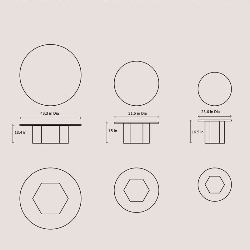 Inspired by historical examples of travertine constructions such as the Colosseum and Saint Peter's Basilica in Rome, and the 1970s revival of the material in Southern Europe, the table combines two simple geometric shapes, the circle and the hexagon, with references to the classical Greek column.