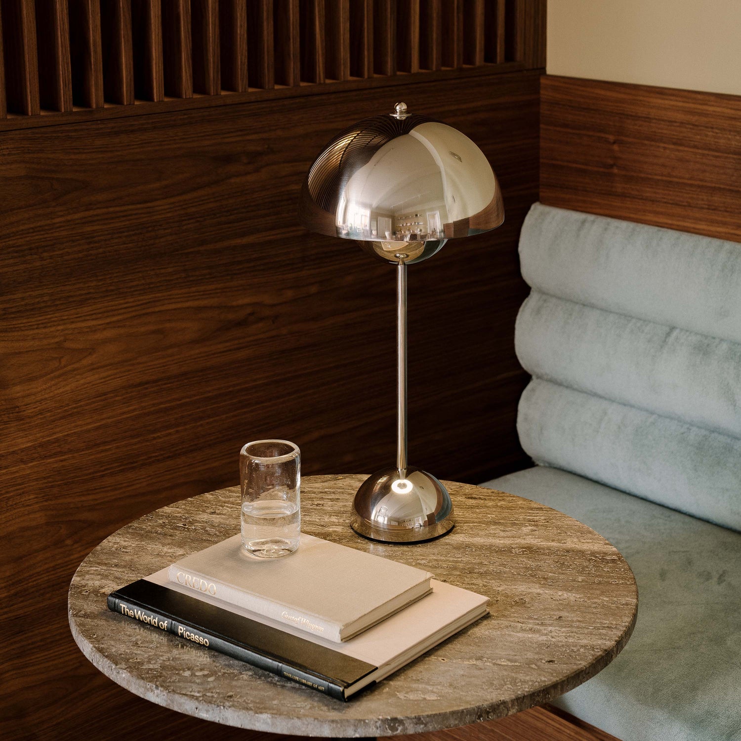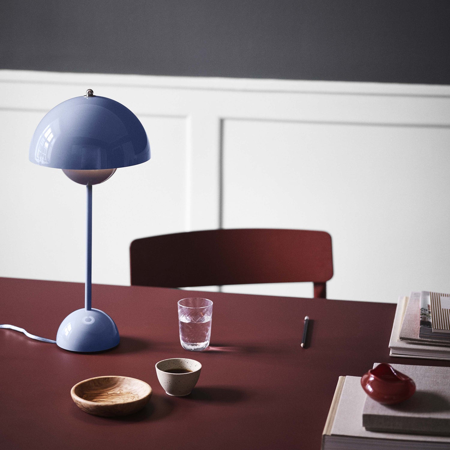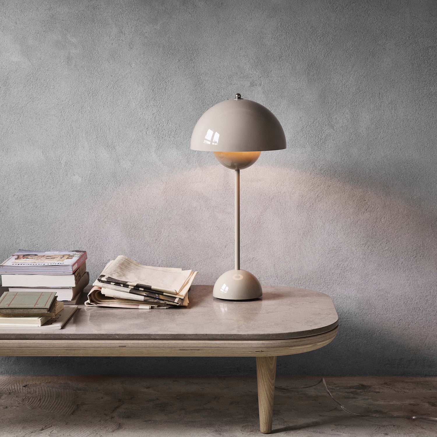 Synonymous with the Flower Power movement from the late 60s, the Flowerpot VP3 Table Lamp from &Tradition was created to embrace a more open, modern mentality promoting peace and harmony. Showcasing a lacquered metal silhouette available in a wide range of neutral and bold colorways, the Flowerpot Table Lamp shade almost resembles a hotel bell with its rounded form and balanced structure. Offering perfectly diffused, downward light, this table lamp is great for accenting an at-home office desk, flanking either side of a living room sofa, or even offering a touch of warmth in a master bedroom. A truly iconic lighting design, the recognizable shape and stunning array of finishes make this lamp a sure winner.