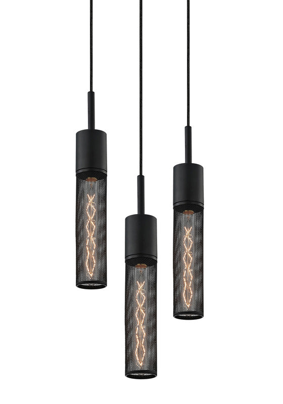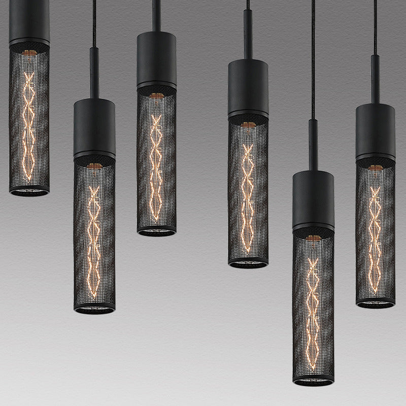 Uptown sophistication with a Downtown edge allows the glow of this helix filament to radiate through the texture of black wire mesh. The grit of the hip urban edge is captured in the coolness of the Urban Edge pendants that can be used singularly or in infinite clusters.