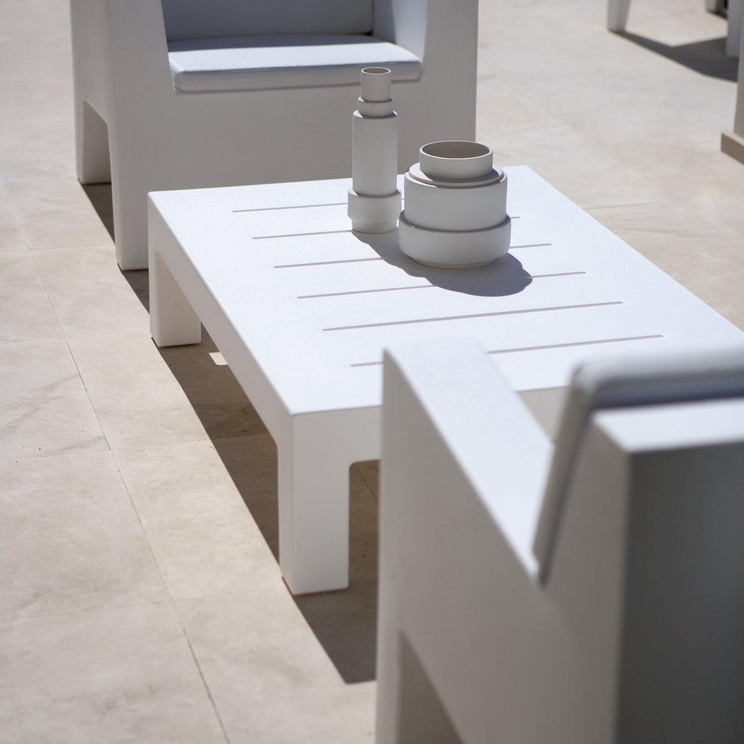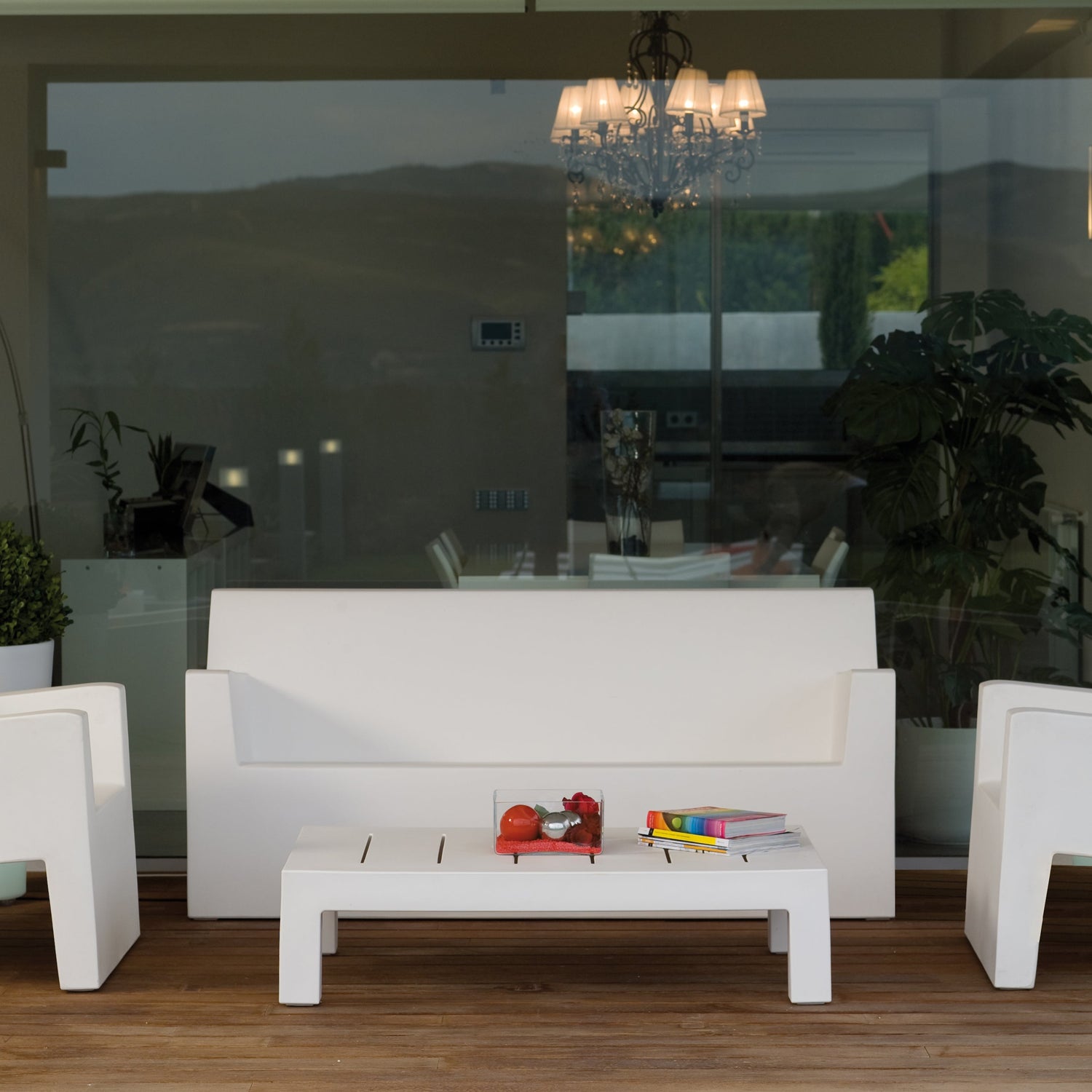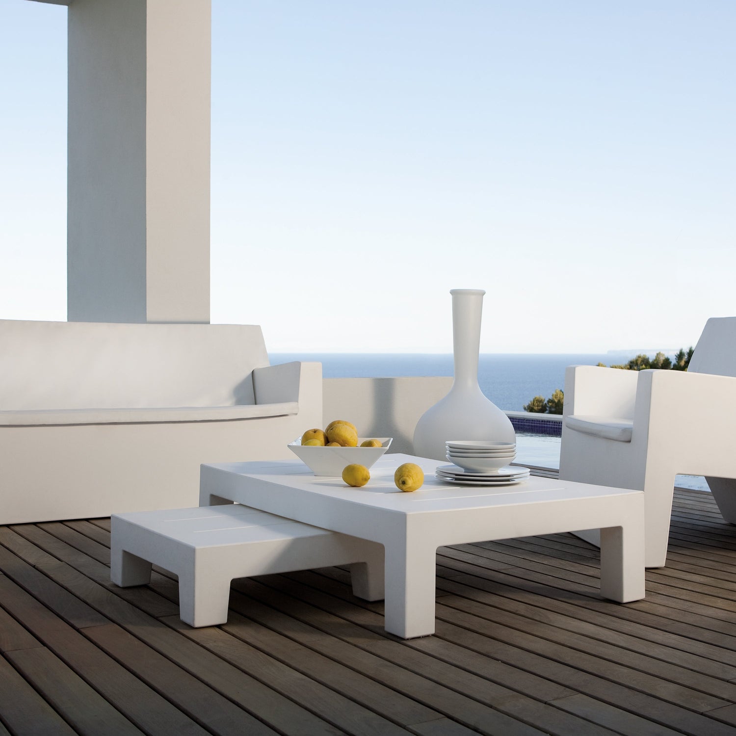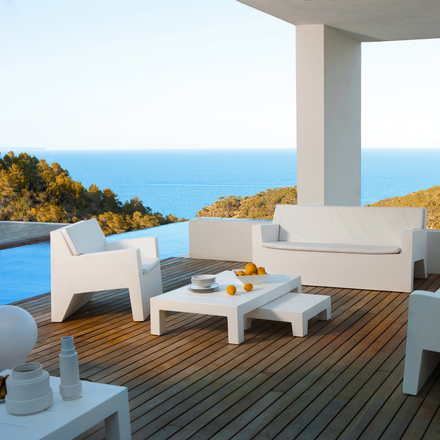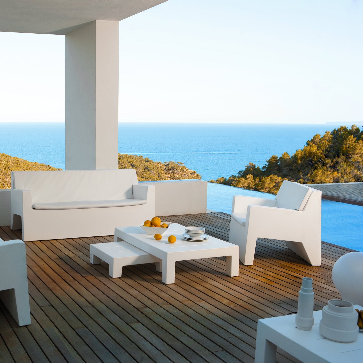 The ergonomics, functionality and ecology are key features of Jut collection. The Jut Collection, unique in its class, is manufactured using exclusive Vondom molds in Valencia, Spain. Optional cushions may be available for a select items in this collection for added comfort.