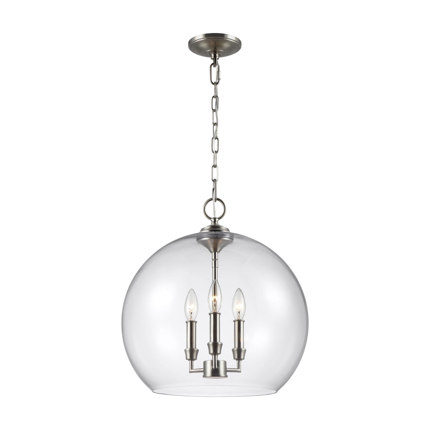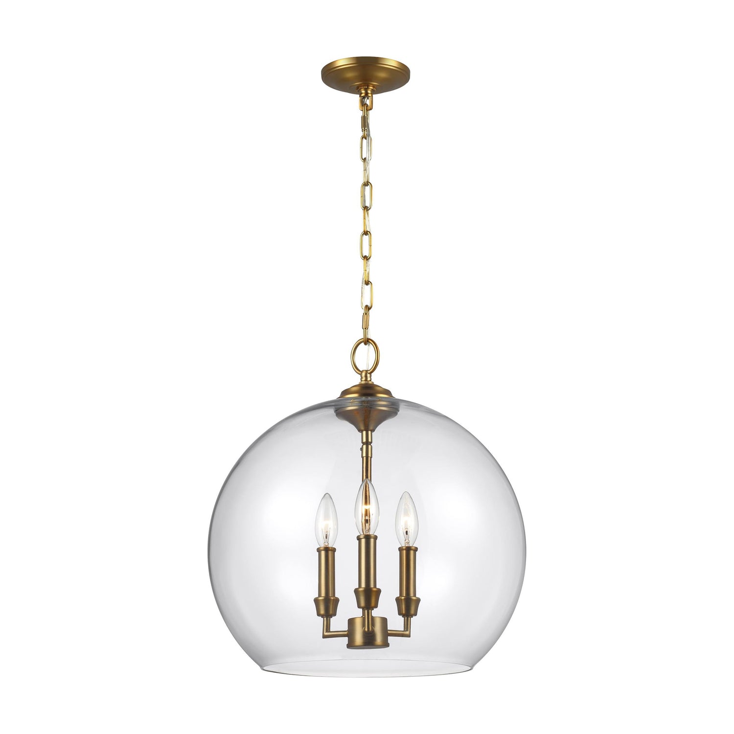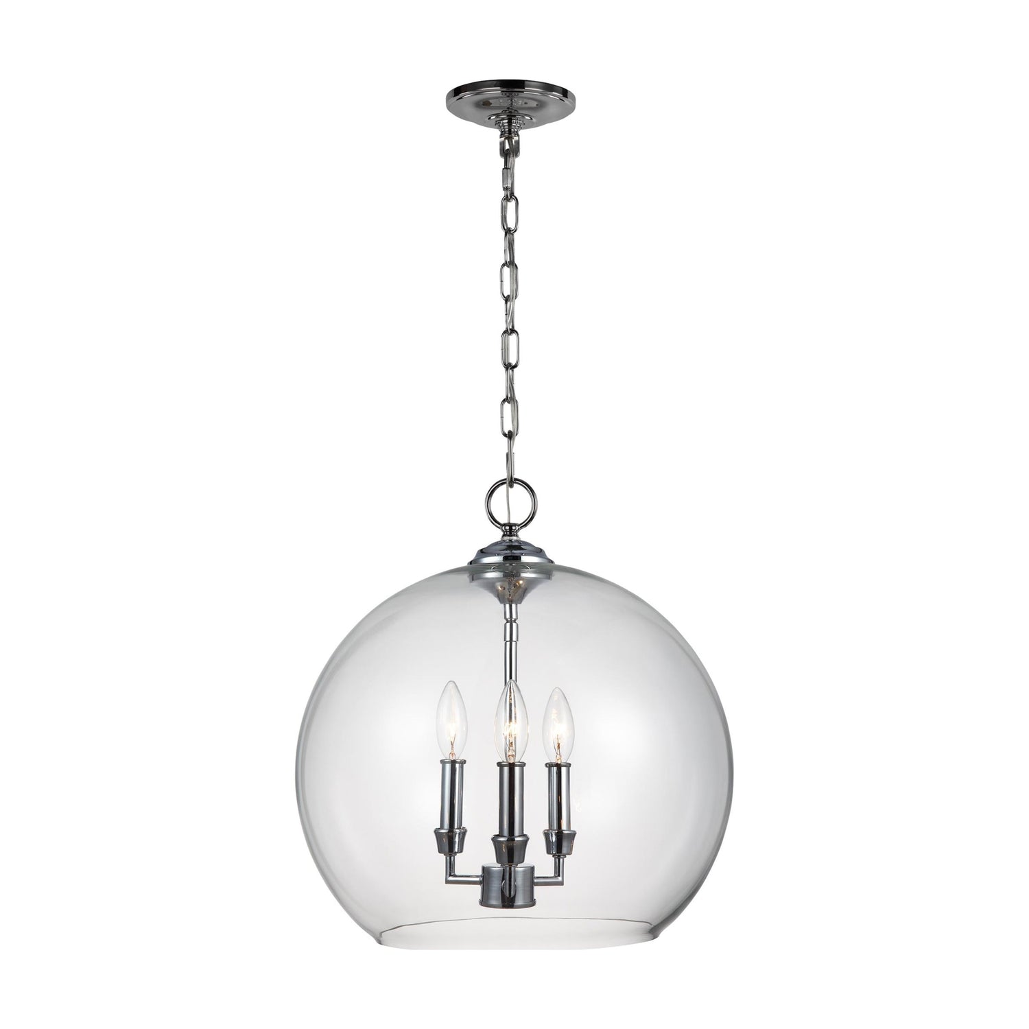 The Feiss Lawler three light indoor pendant is the perfect way to achieve your desired fashion or functional needs in your home. The Lawler pendant collection by Feiss captures the cozy charm of the classic bell and orb pendant silhouettes seen throughout history and versatile enough to complement a foyer, living room, dining room, bedroom, or kitchen. The candelabra lamping suspends from the center, and appears floating within the Clear glass shade. Installed individually, in pairs or in clusters, the Lawler pendants add warmth and charm to any traditional setting.