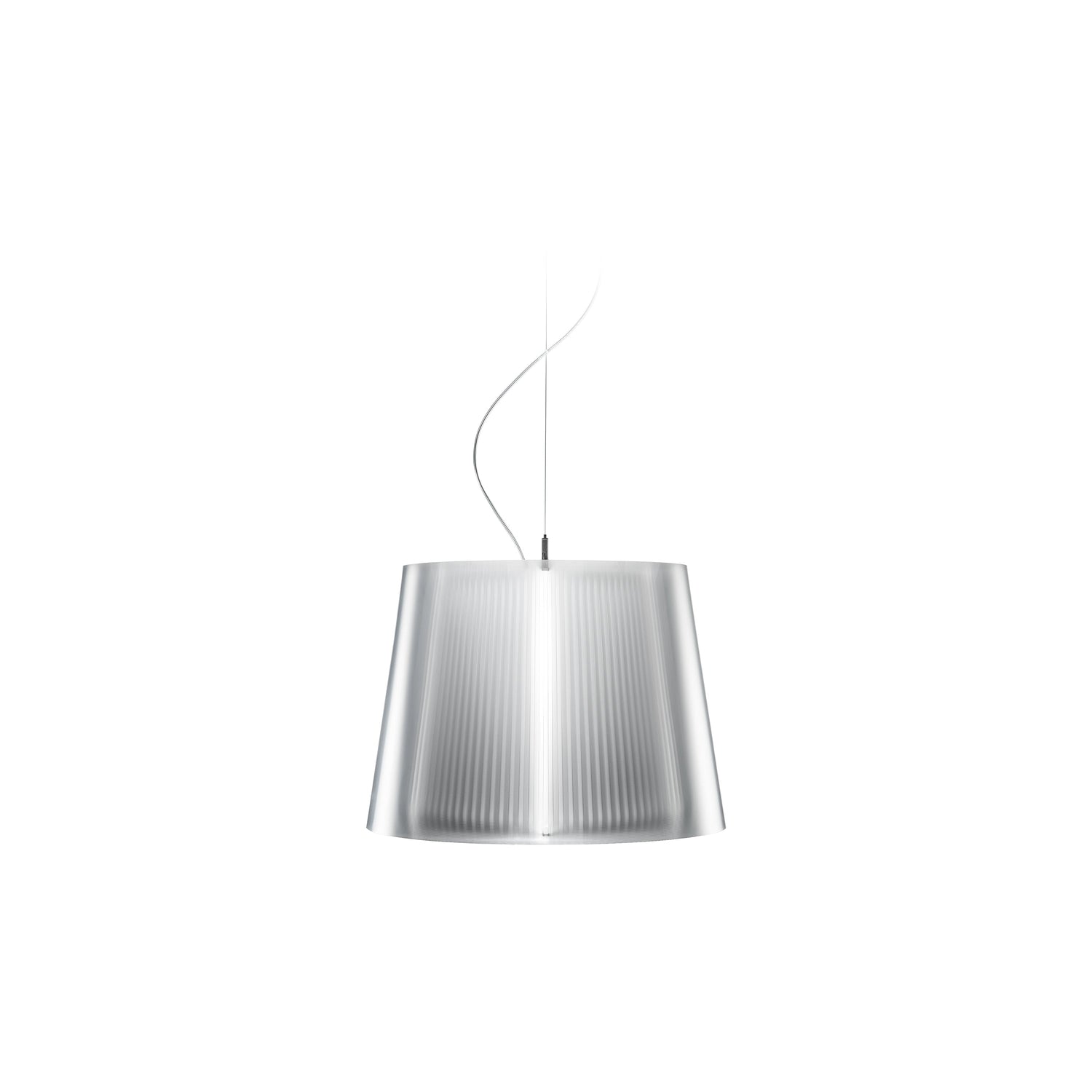 The new lamp Liza Suspension, inspired in color and design from the typical suspensions in pleated fabric, is made of Lentiflex, a modern material patented by Slamp which spreads the light prismatically through a thin Fresnel effect.
