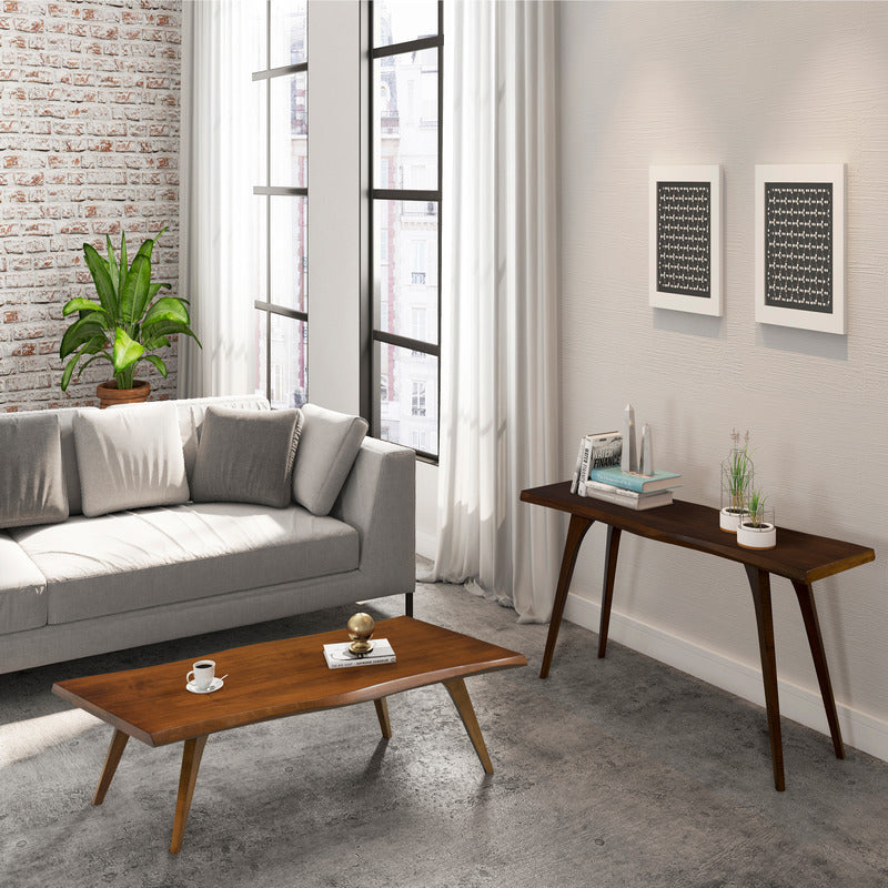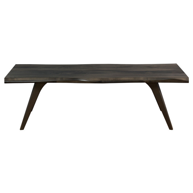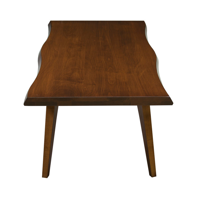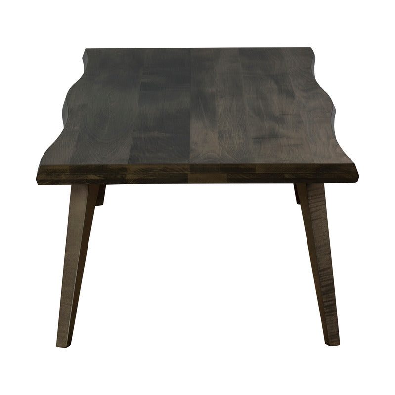 Graceful and undulating, the wave edge top pays homage to the organic forms of the live edge movement while maintaining its own precise, sculpted identity. Maple legs both arch and splay beneath the table to create a decidedly modern stance. Each table is designed, crafted, and finished in the USA.