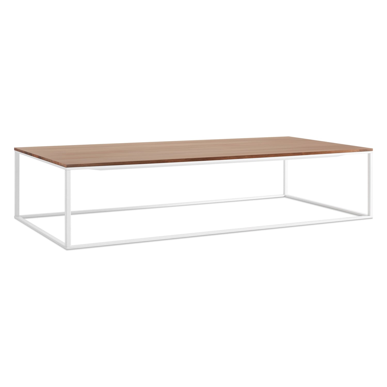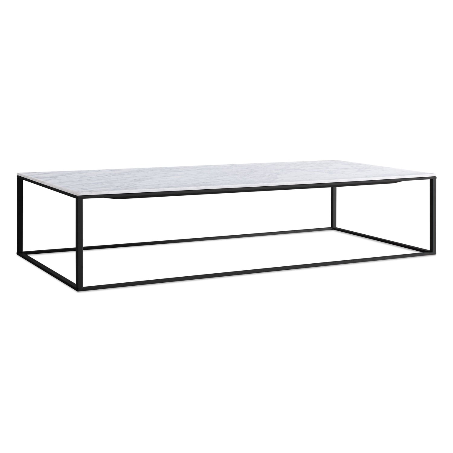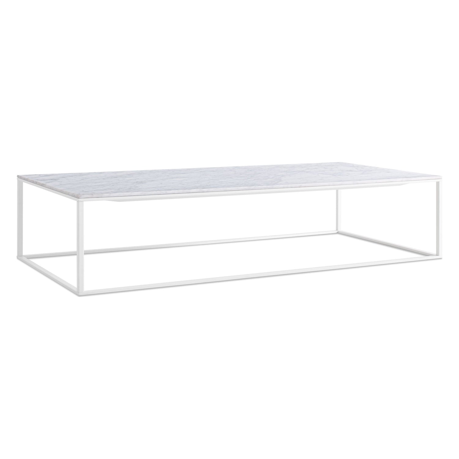 The Blu Dot Minimalista Large Coffee Table features a pure geometric composition in which a linear metal base supports a rectangular table top. An elegant modern table that looks at home in any room or space, Minimalista is available in several steel finishes and a choice of wood or marble tops, ideal for customizing to taste and interior composition.