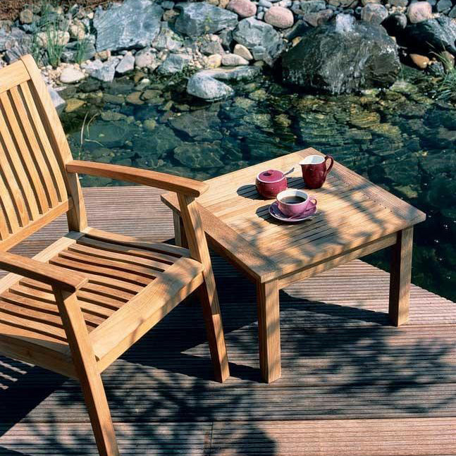 This stylish coffee table with slim slats and clean lines is the ideal height for use as a side table. A perfect accessory to your garden leisure time.