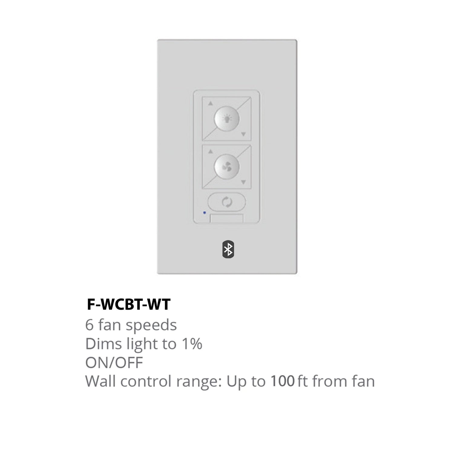 - Bluetooth Wall Control (Sold Separately) with on/off, 6 speed, reverse, and dim to 1%, Android or iOS Device App Included (F-WCBT-WT)