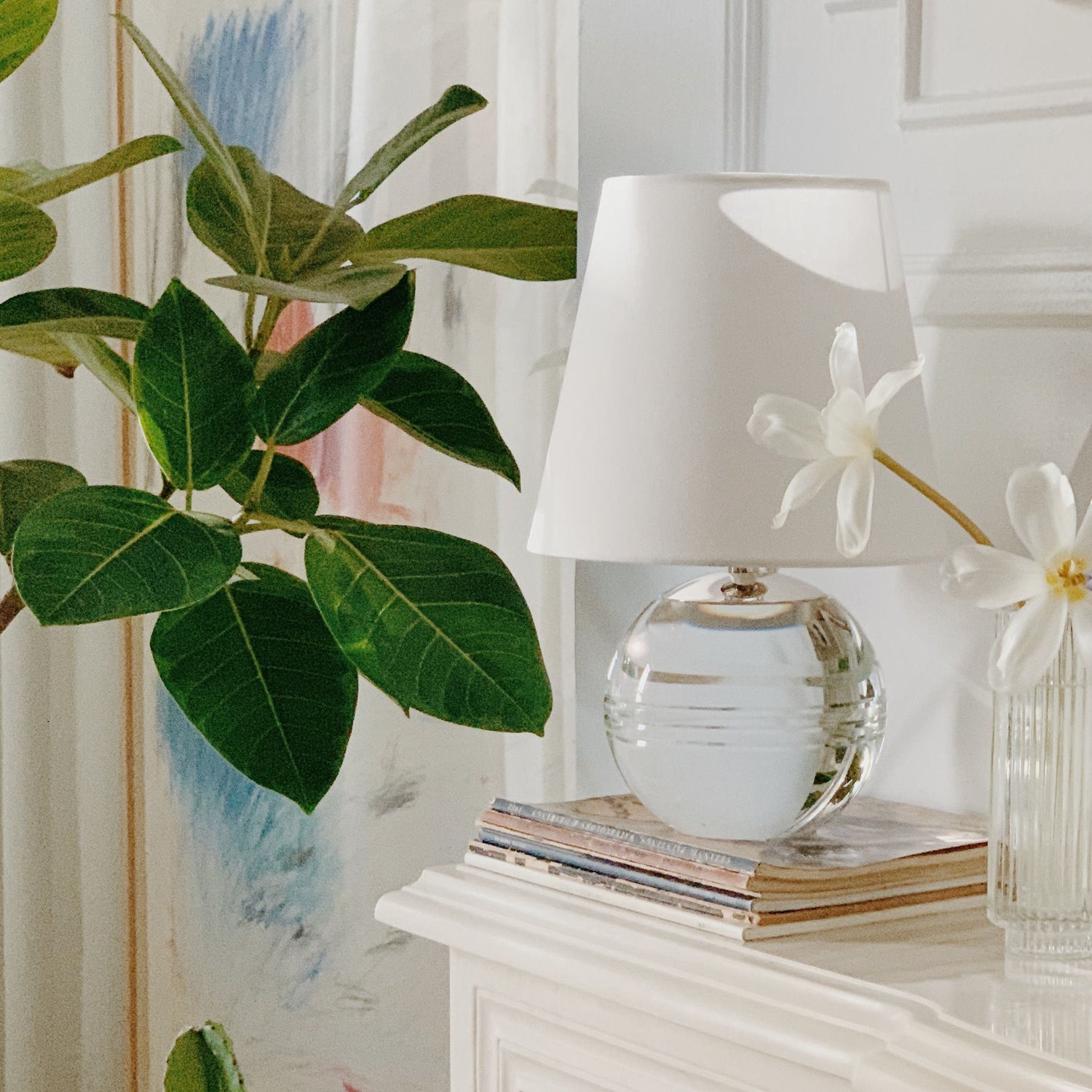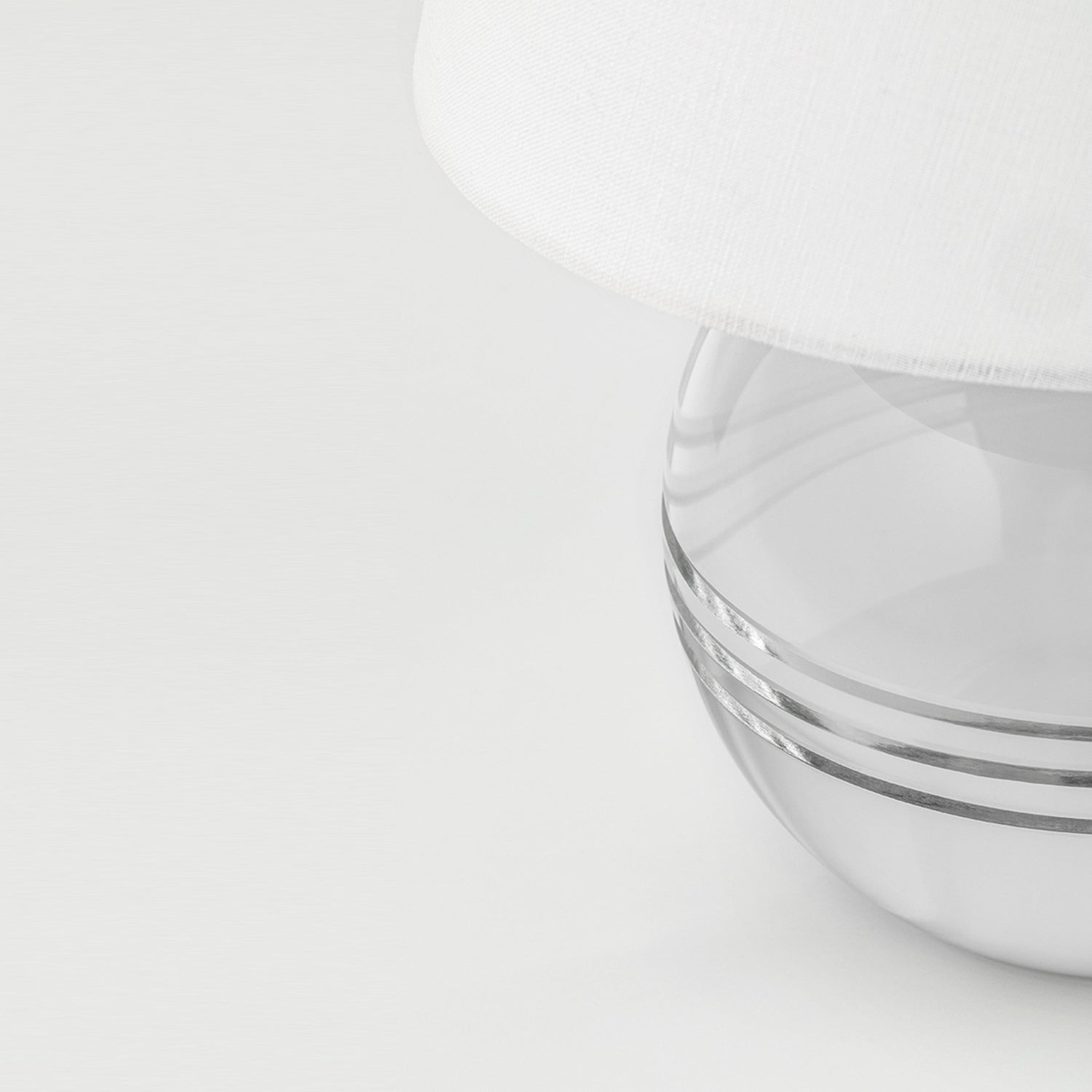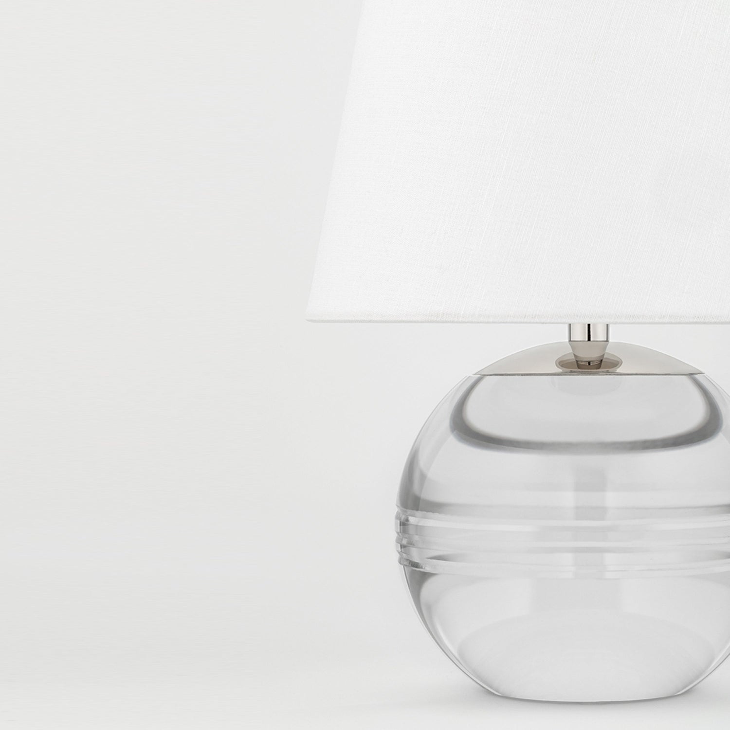 A crystal base, ridged with ripple-like cuts, topped with a beautiful long shade of linen, Nicole is a table lamp sure to form the perfect accent. This pretty portable is French wired, in the tradition of a treasured flea market find from before electrical times.