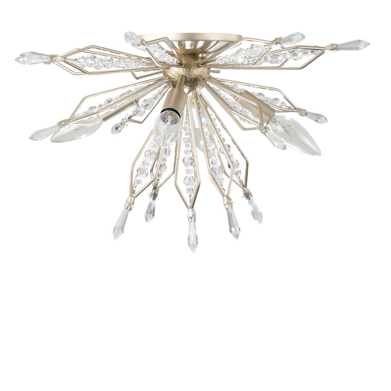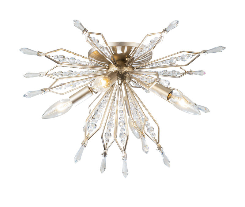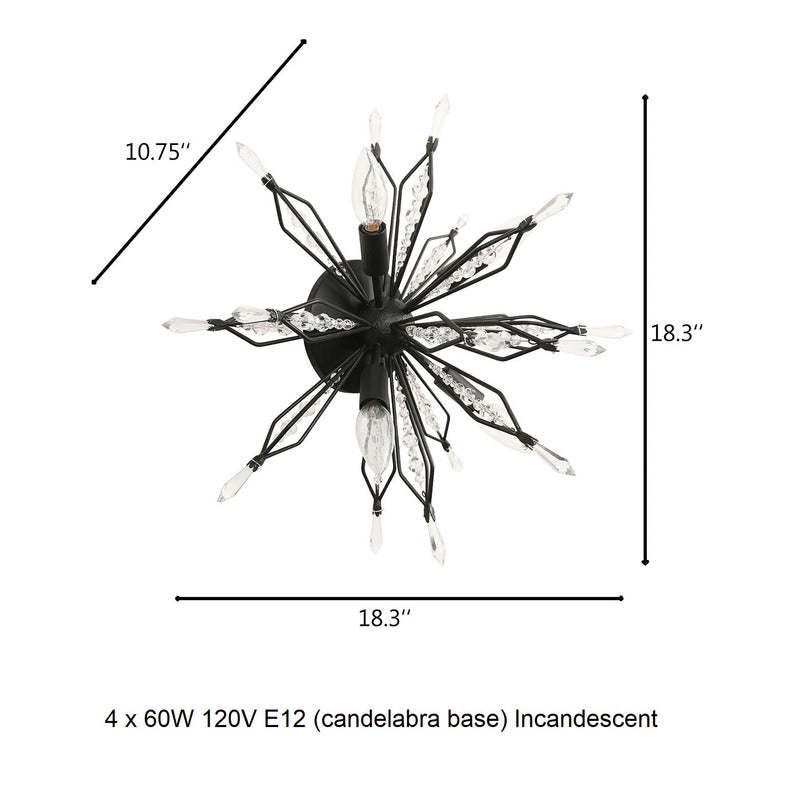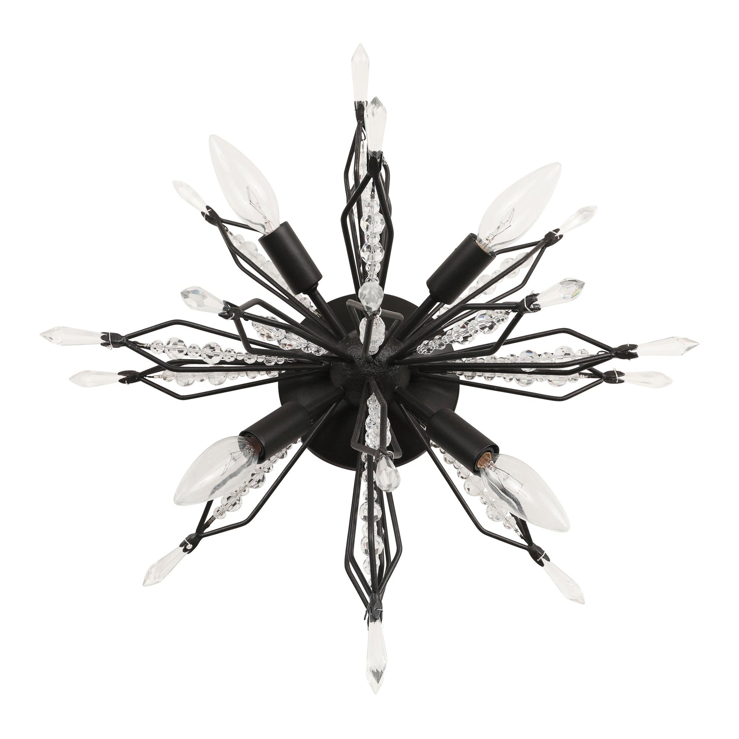 Orb shaped wall/semi-flush fixture with exposed light source surrounded by bead and point crystals.