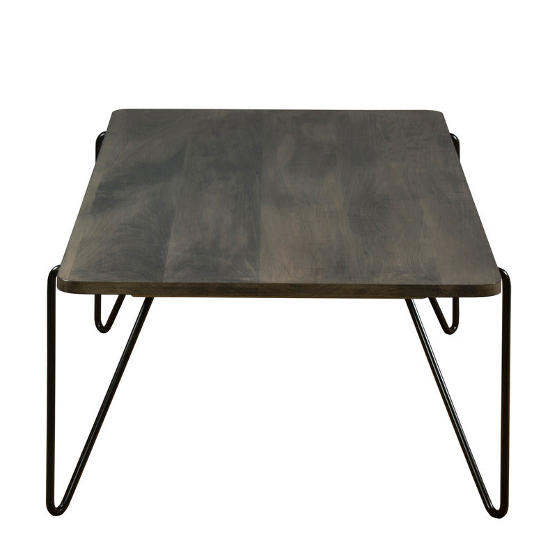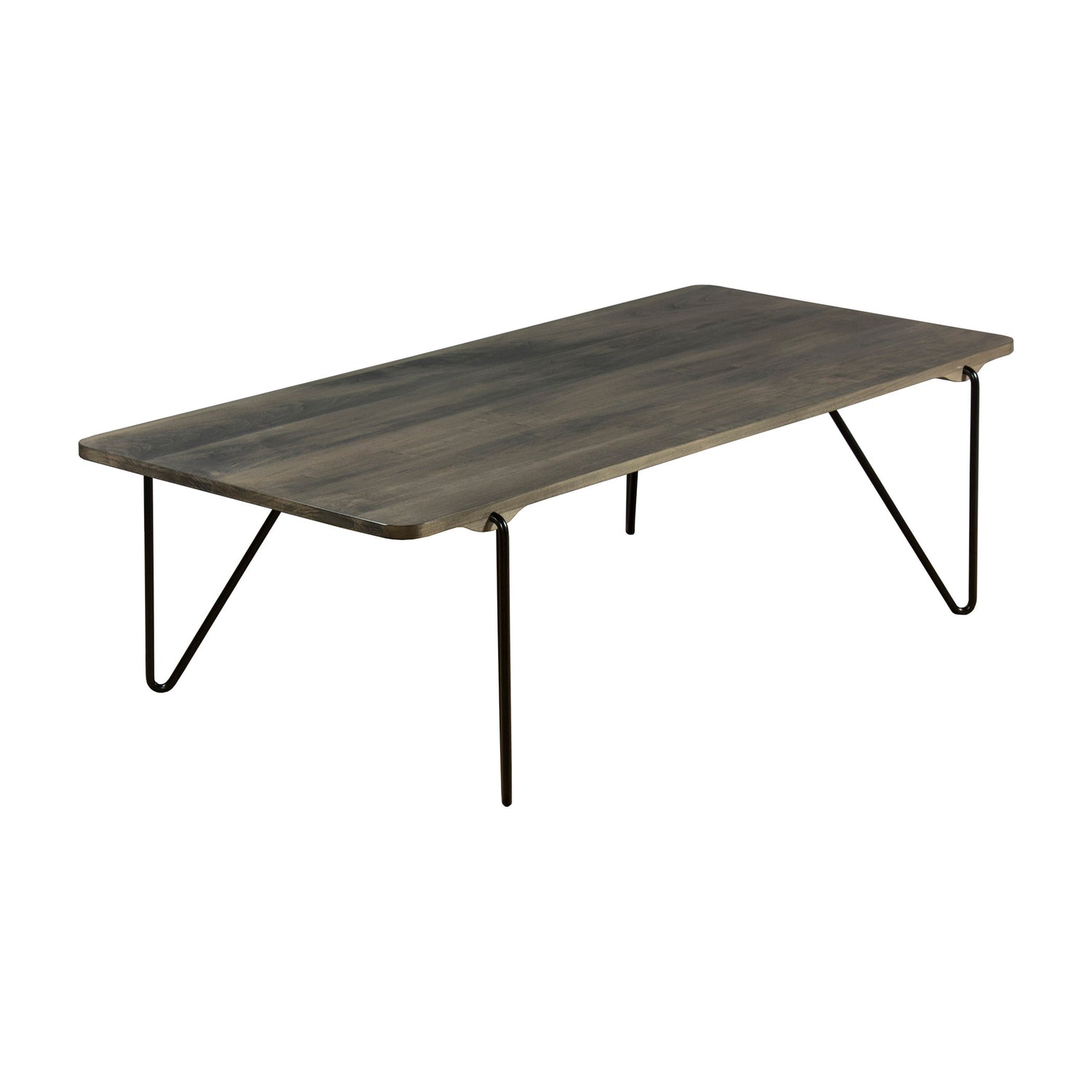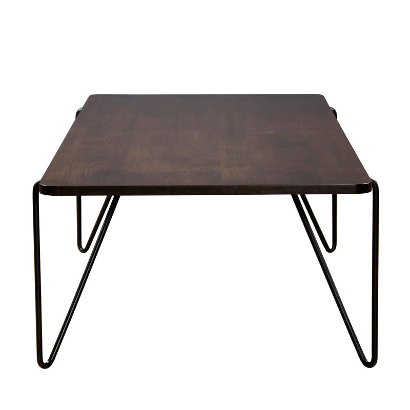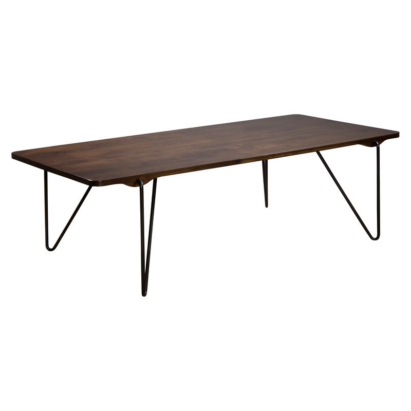 Taking the integration of wood and steel a step further, this cocktail table features steel legs that actually emerge from the solid maple top and curve down the floor. Flawless unison. Modern masterpiece. Each table is designed, crafted, and finished in the USA.