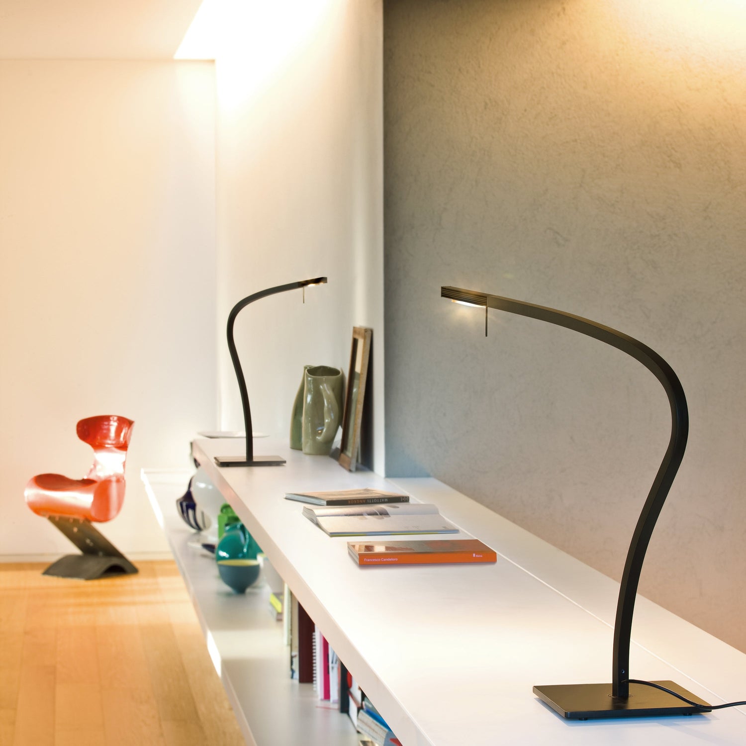This is a design that could be summed up in a squiggle, in a pencil stroke that takes light and develops it into a sinuous and fascinating form. It's something that is not at all obvious. Paraph, in its table and floor versions, demonstrates an elegant light design with the beauty of a simple gesture, just like pencil on paper. It's like a handwritten signature of a story that leaves its mark, unique in its outright nature.