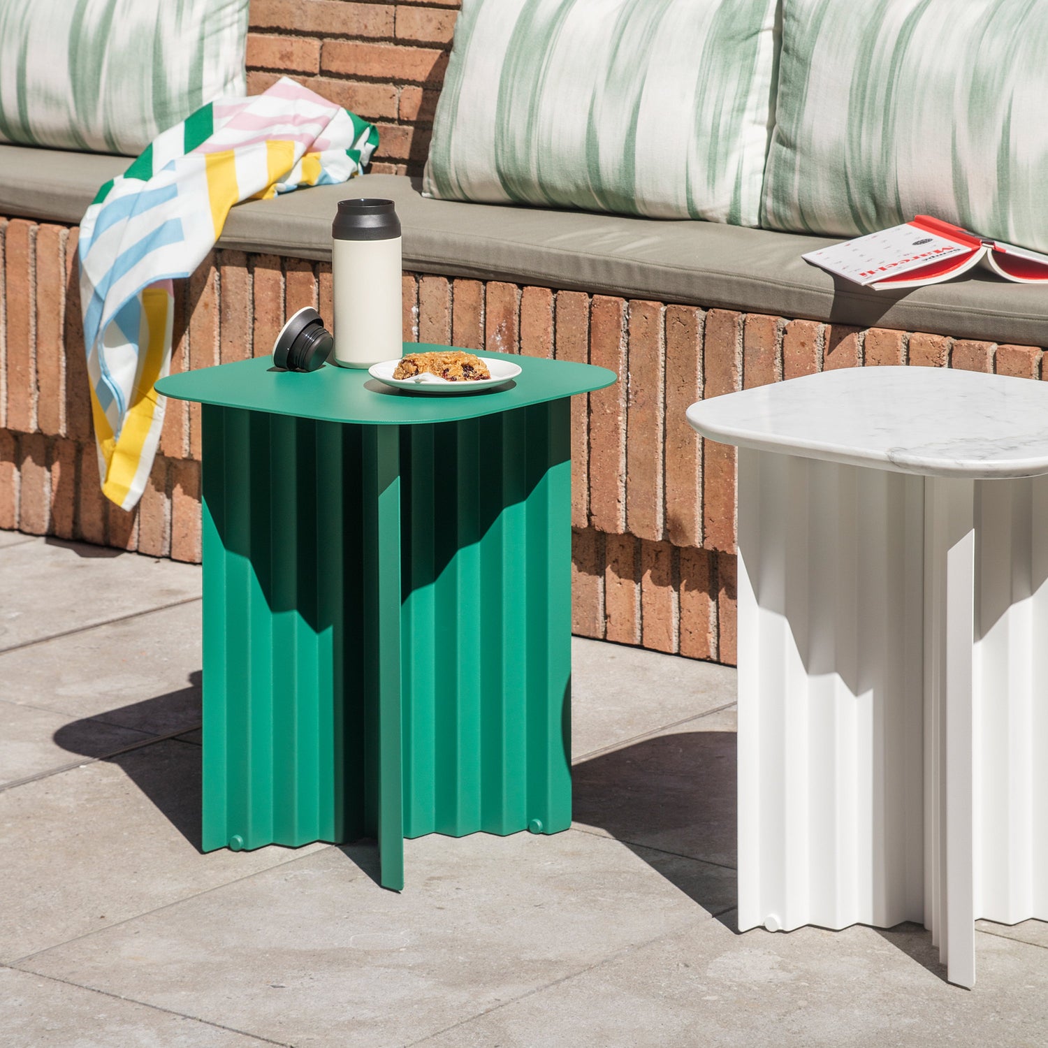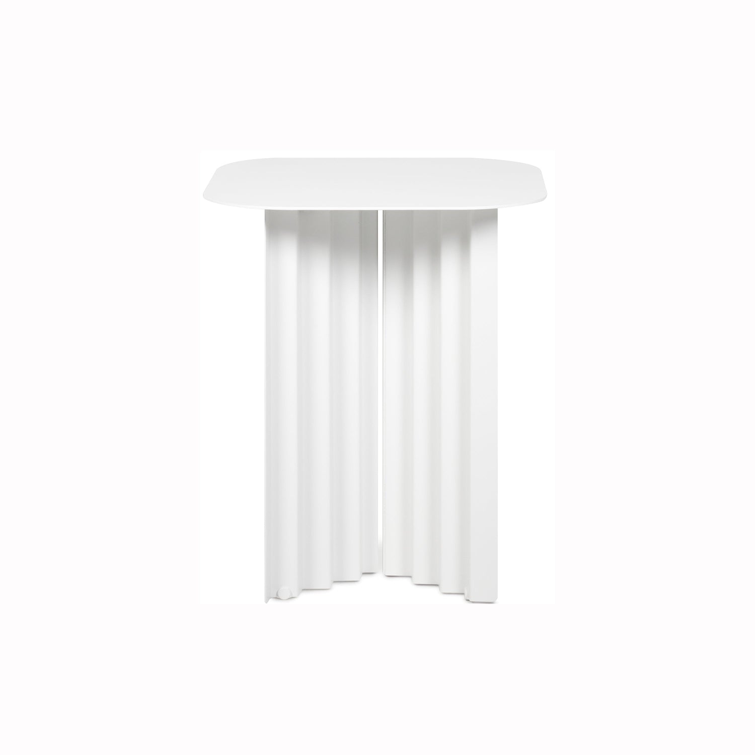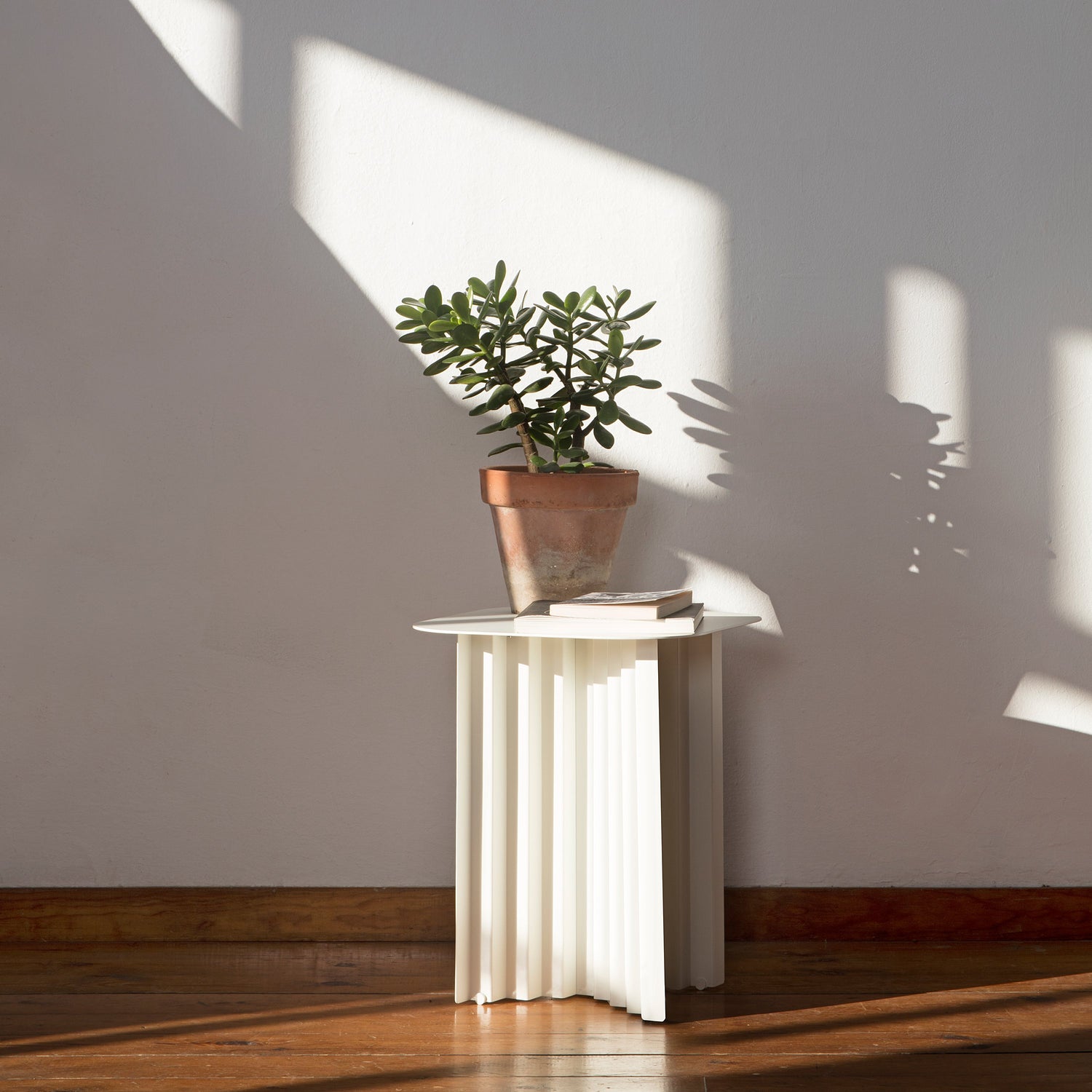 To guarantee stability and consistency of the Plec tables, the designers and engineers have chosen a thickness for the base that allows repetitive folding without losing firmness and stability but still provides some sculptural and visual flexibility.