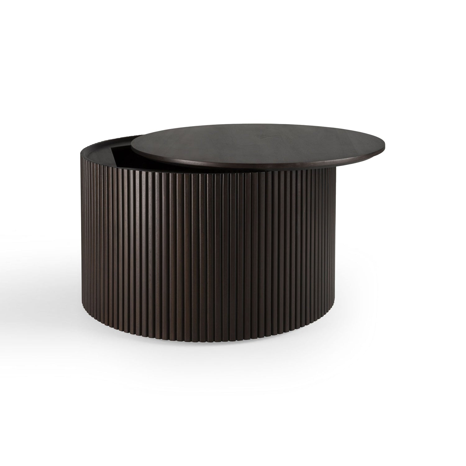 Multifunctional designs are always in style. Cleverly designed by Jacques Deneef, the Roller Max Round Coffee Table from Ethnicraft offers striking Scandinavian style that doubles as both functional furniture and convenient storage. Masterfully crafted and hand-carved from dark brown-tinted solid mahogany wood, the lid of this coffee table lifts to reveal space to hide pillows, magazines, throws, and more, ensuring your space is always clean and clutter-free. Perfect for spaces both large and small, top this coffee table with favorite decor, a scented candle, and fashion books for a sleek and chic display sure to impress.