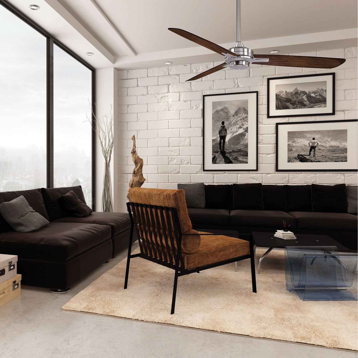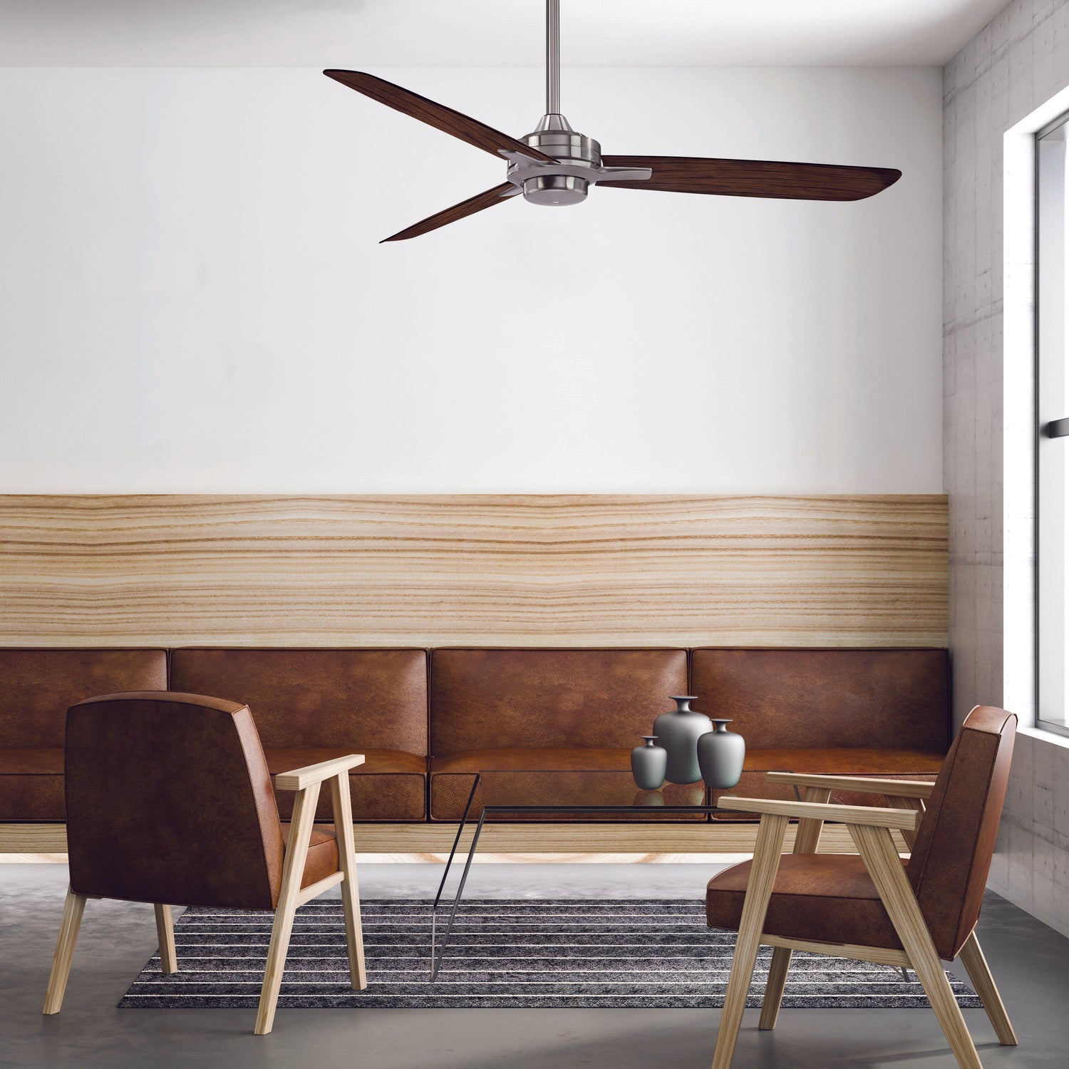Inspired by a contemporary architect of the 50's, this clean three blades design best exemplifies today's trend in home furnishings. Included is a wall control, cast blade holders and a 172 x 16 mm motor for great air movement.