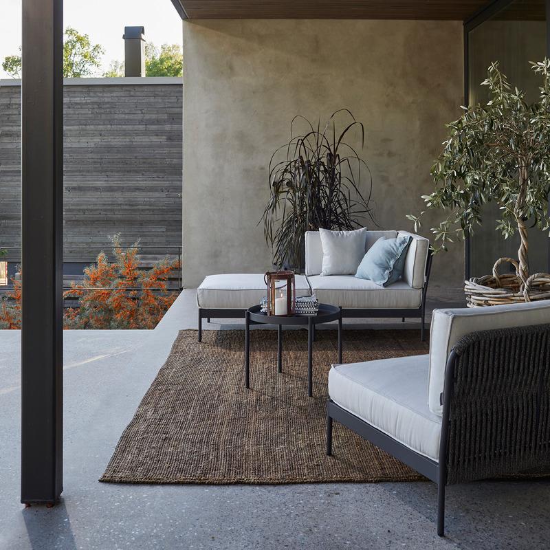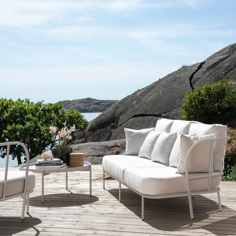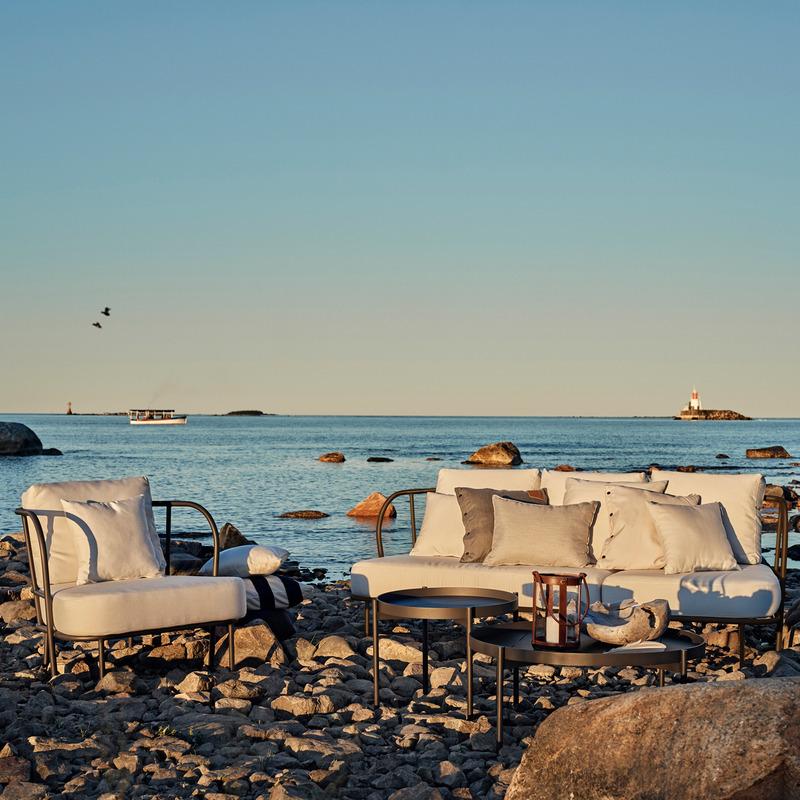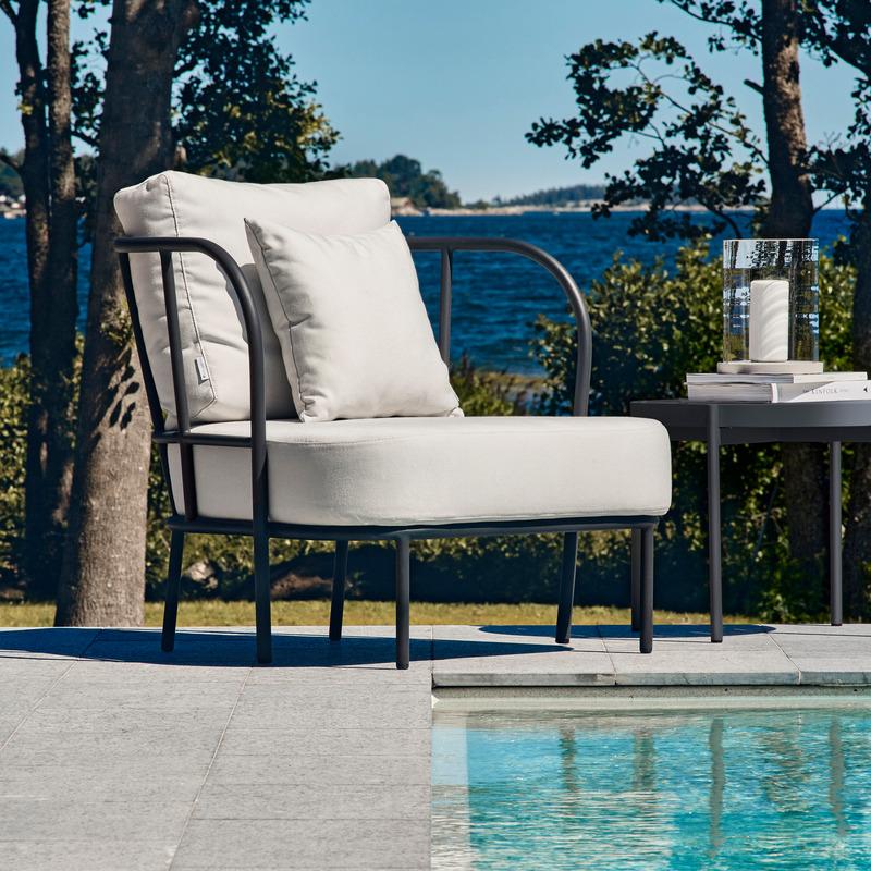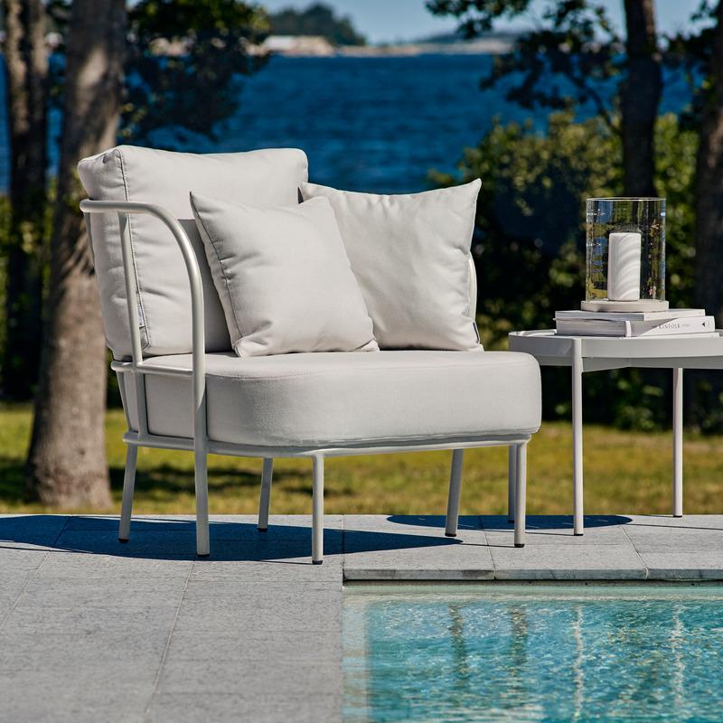 Lounge and dining range, that offers maintenance-free furniture with a distinct, Scandinavian, design. Aluminum frames, gently curved and elegant, repelling any rain.