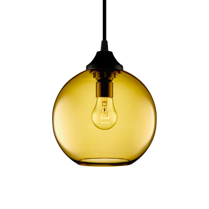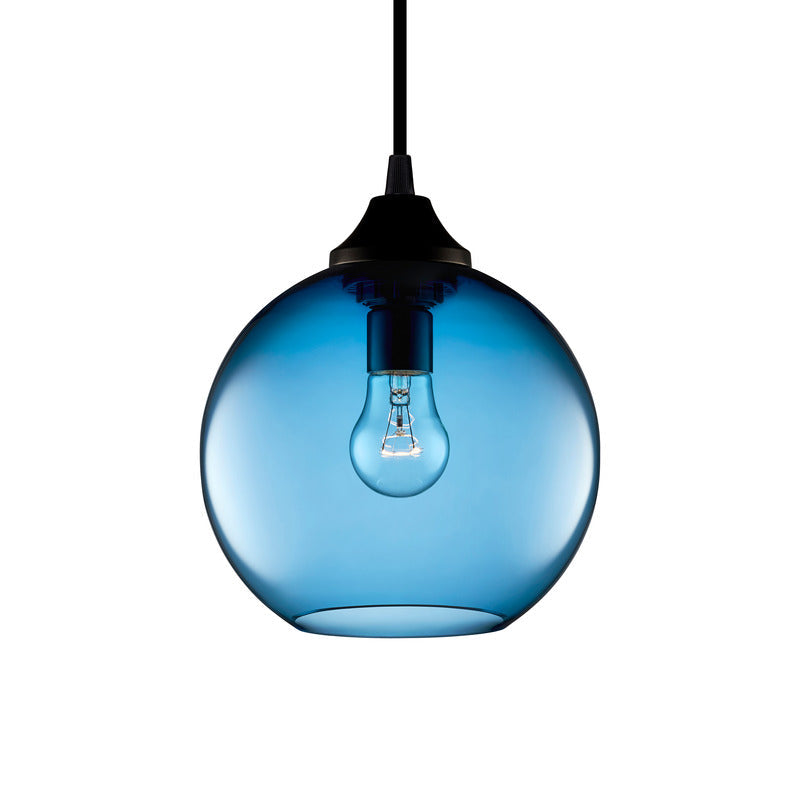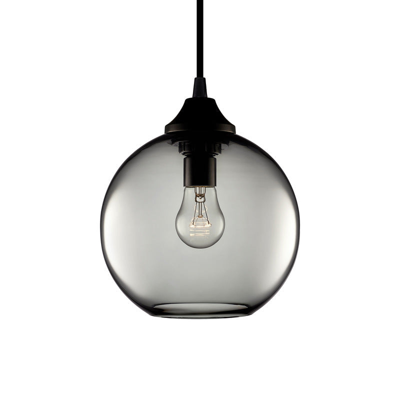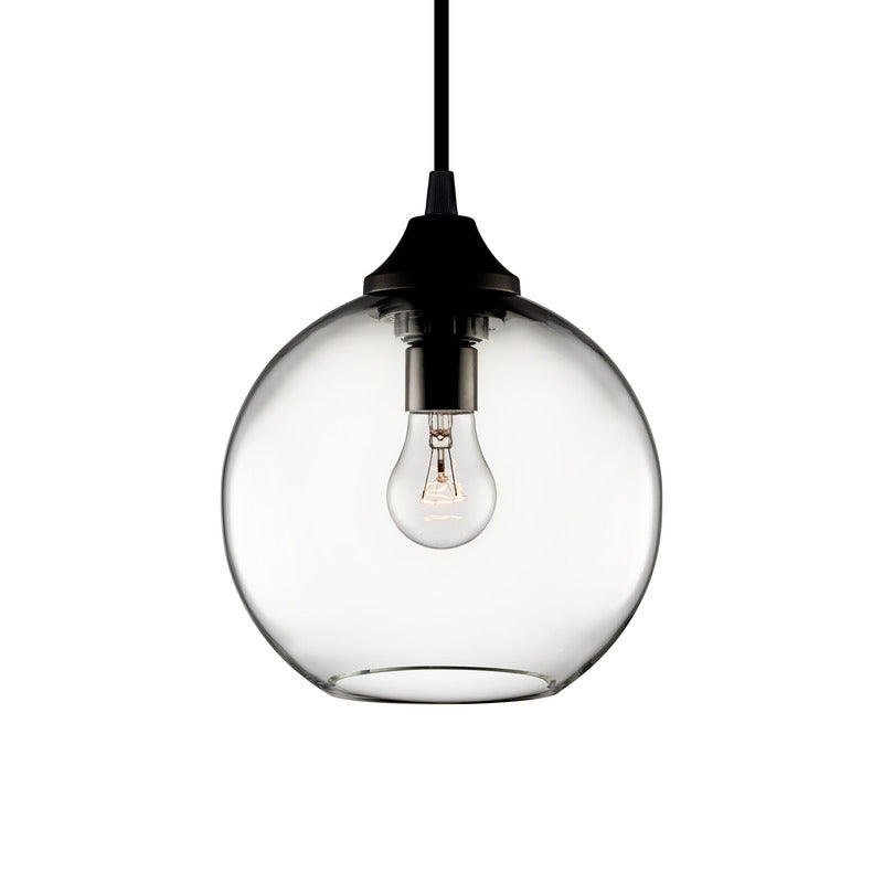 Brought to Their line by popular demand, the Solitaire Petite pendant is the smaller version of Niche's classic spherical silhouette. When coupled together, the bulb at the center of this pendant accentuates enduring quality and beauty. Every single glass pendant light that comes from Niche is hand-blown by real human beings in a state-of-the-art studio located in Beacon, New York. Their team of experienced glass artisans takes great care in delivering products made from the finest materials in the world with the highest standards of craftsmanship in mind. All pendants are sold with the following components and are ready for hard wire ceiling installation: Glass fixture, standard incandescent bulb (as pictured), 5 inch black ceiling canopy, and 4 foot black cord set.