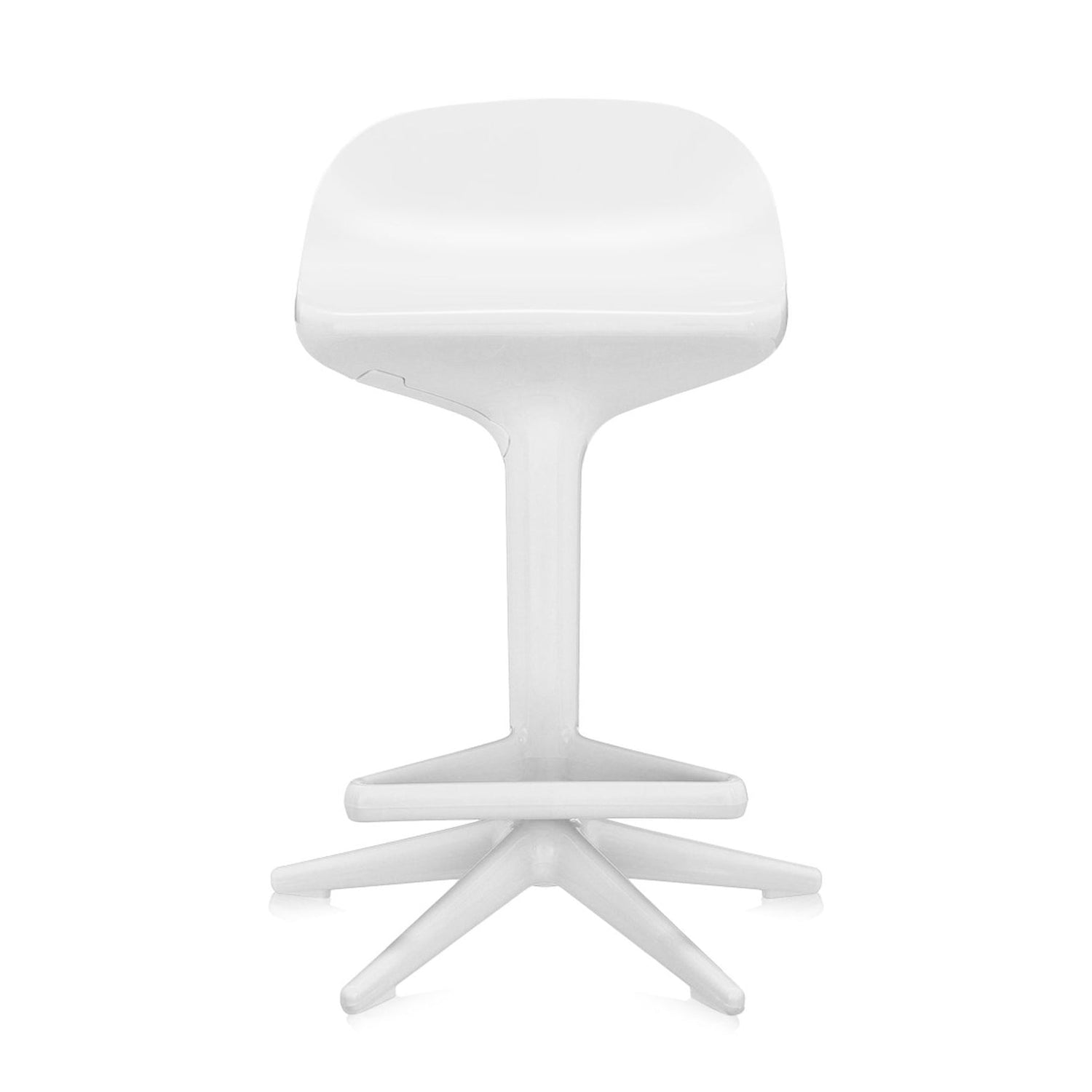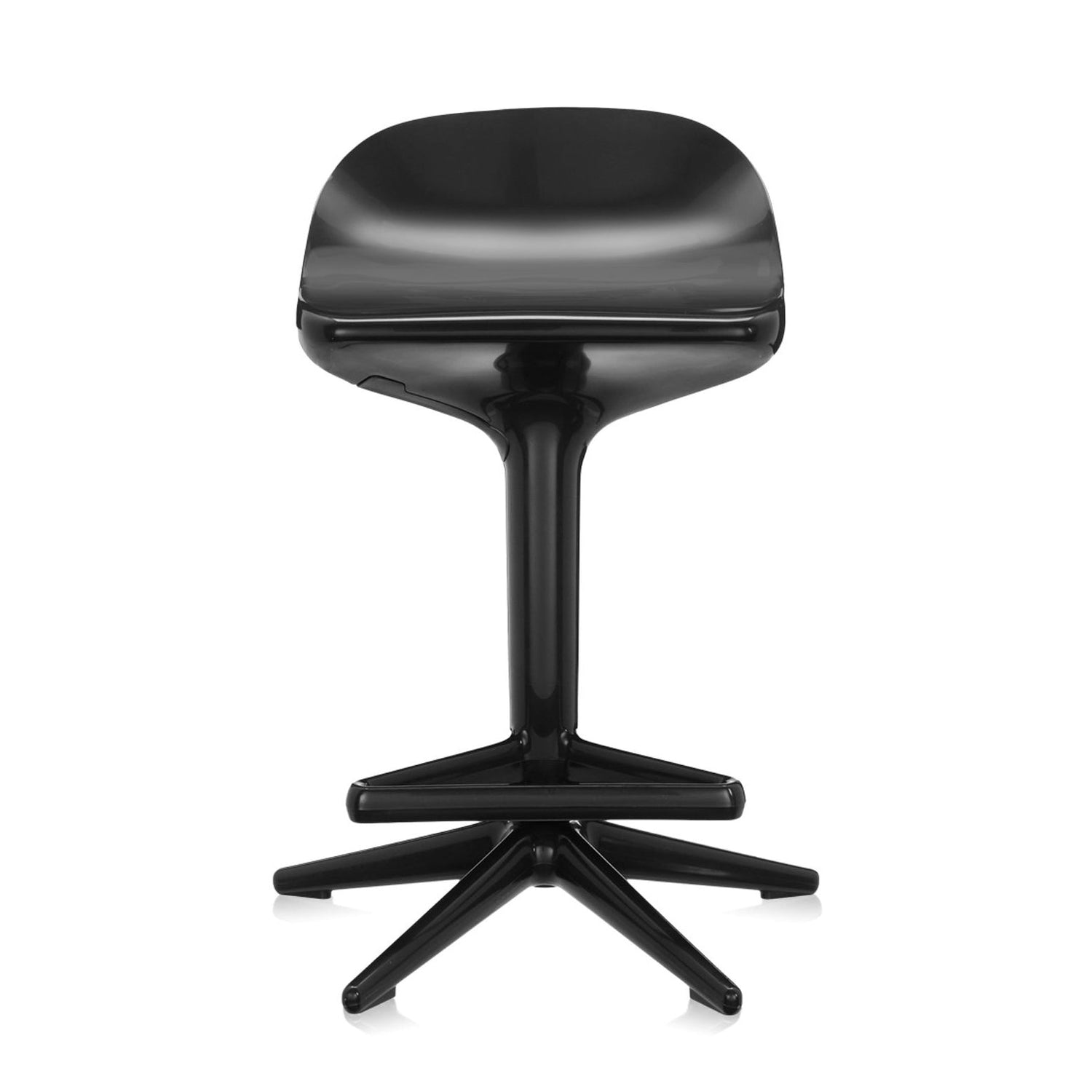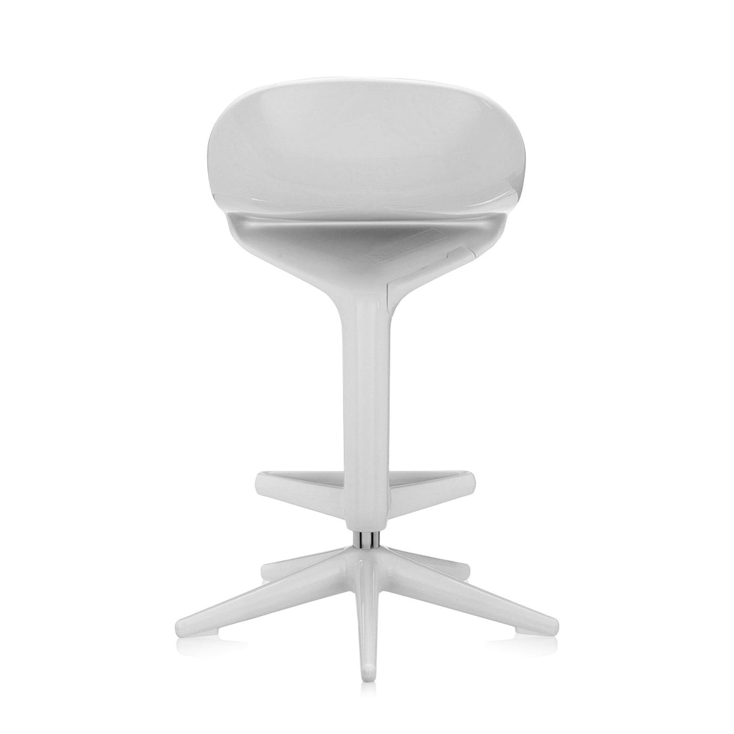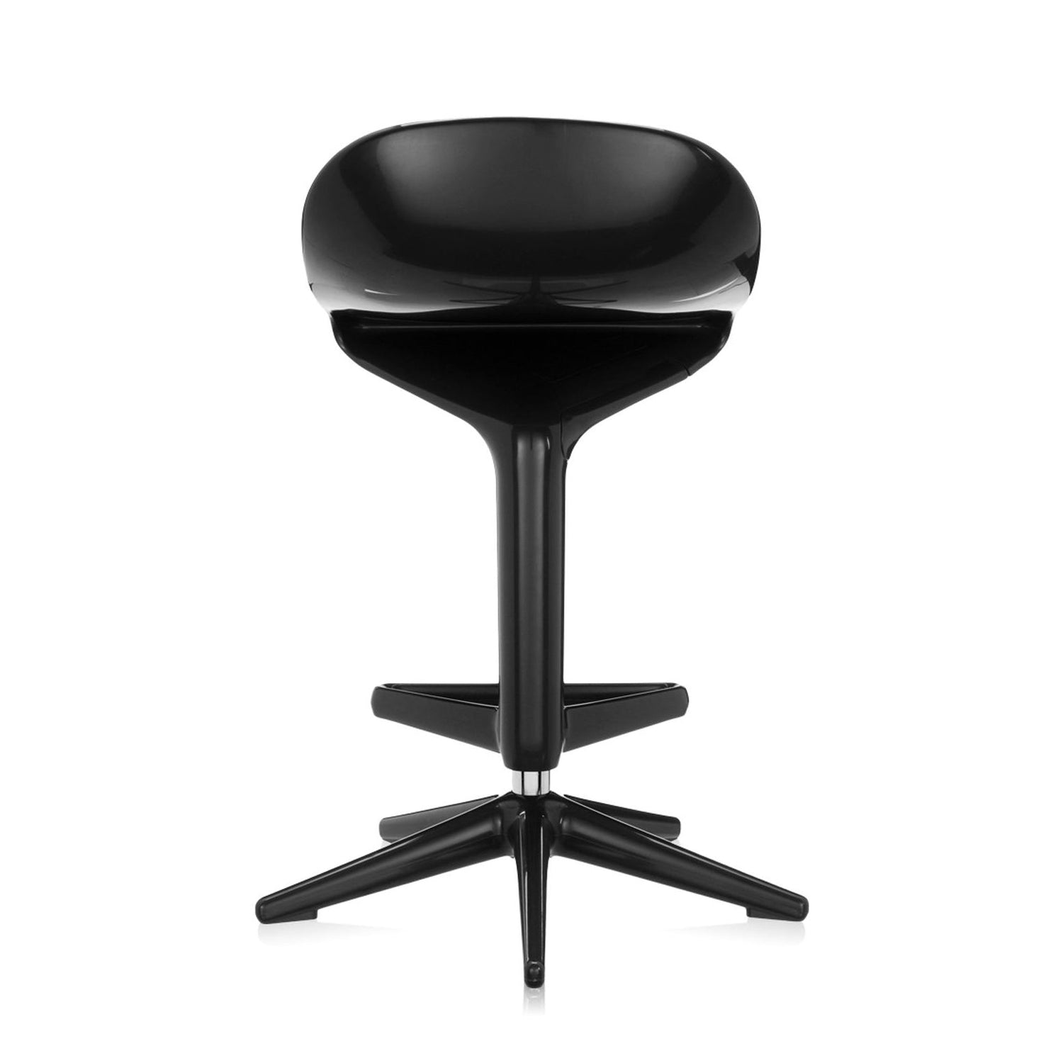 An original stool that is equally functional. The innovation of Spoon consists mainly in attaching the seat to a central support with a specially reinforced curve that guarantees flexibility and comfort. Furthermore, because of a sophisticated design solution, the gas lift pump adjusts to heights between 22 1/3 and 30 inches and is perfectly inserted into the stem. In the same ingenious fashion, the handle that regulates this mechanism is perfectly concealed inside the seat. Spoon lends itself to any surrounding: kitchens, bars and restaurants.