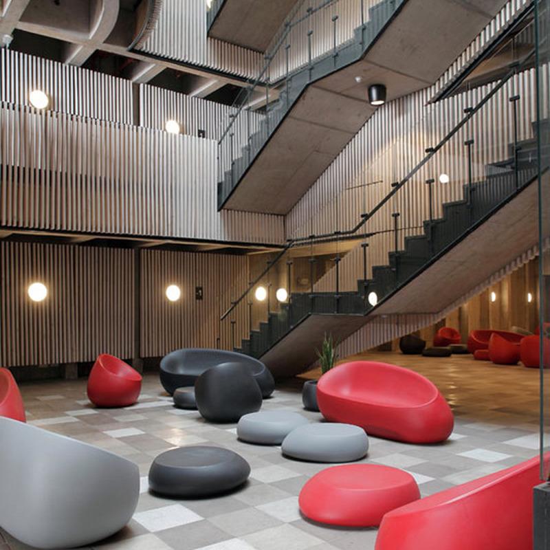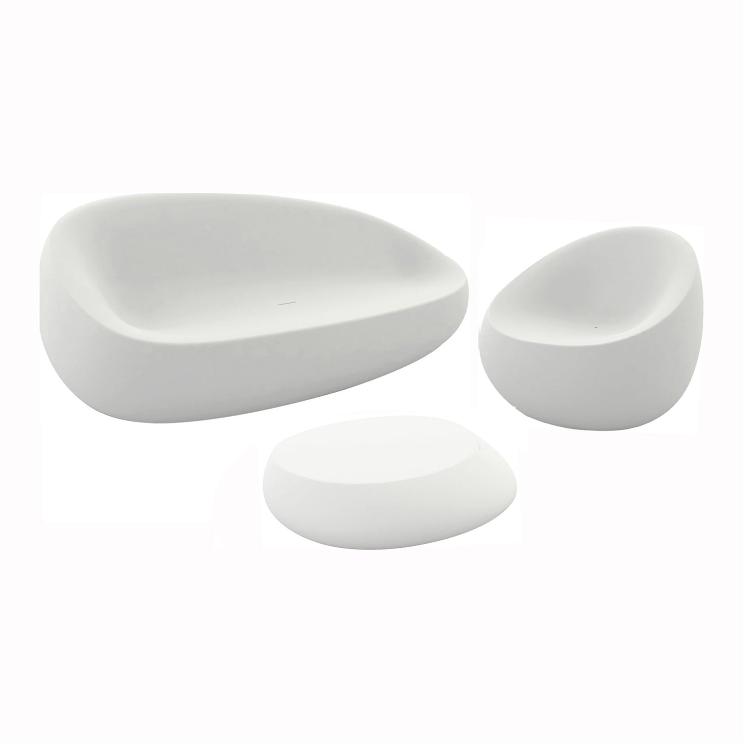 Inspired by natural rock formations, the Stone Lounge Set from Vondom offers a unique lounge set choice for both indoor and outdoor spaces. Crafted from polyethylene resin, the hollowed out pieces are incredibly light weight and smooth to the touch. The gentle curves cradle you as you lounge and enjoy the outdoors poolside or in a shady spot in the garden. The flattened surface of the coffee table is ideal for serving drinks and apps for friends and family while they play cards or a rousing game of checkers. Cohesive and contemporary, this modern lounge set brings outdoor appeal to any space you call home.