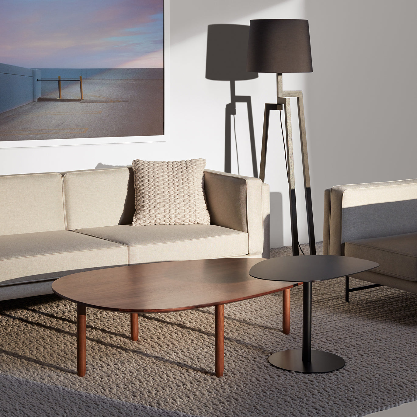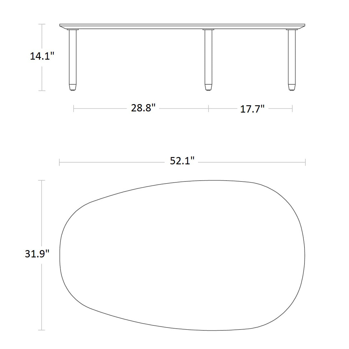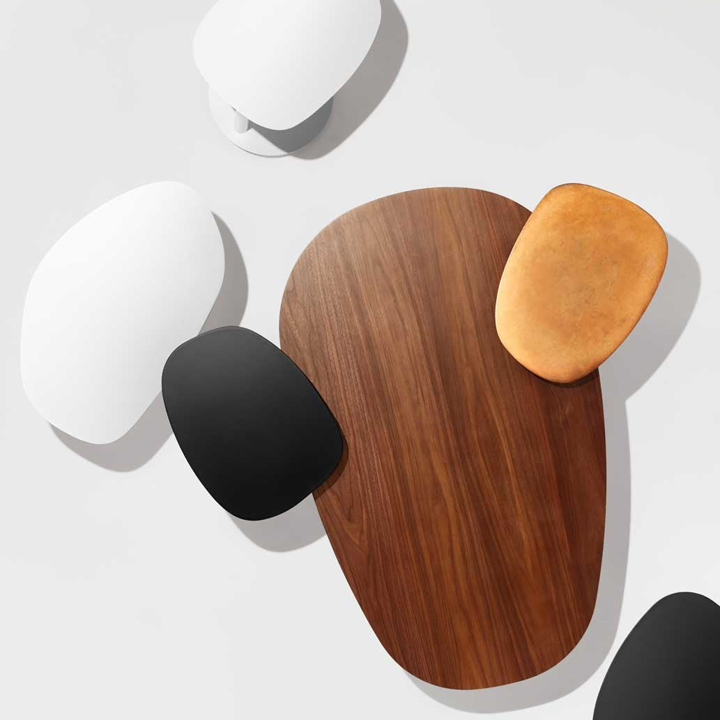 A pebble-like shape meets with solid dowel legs in this well-proportioned coffee table. Gang with the Swole small table and Swole medium table to create a landscape of function and awesomeness.