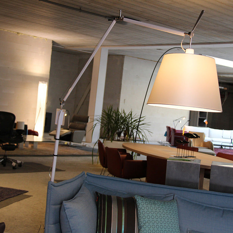 Floor standing luminaire for adjustable direct and indirect diffused lighting.