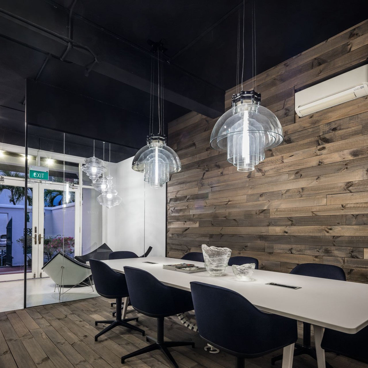 Lasvit Transmission by studio deFORM is a unique lighting sculpture which is based on experimentation with Simax borosilicate glass and produced in cooperation with Kavalier glass. Lasvit Transmission is cut and welded into an original composition that offers unpredictable and surprising lumino kinetic effects from every angle. Glass parts are joined together by heat, individual elements become one material and one body.
