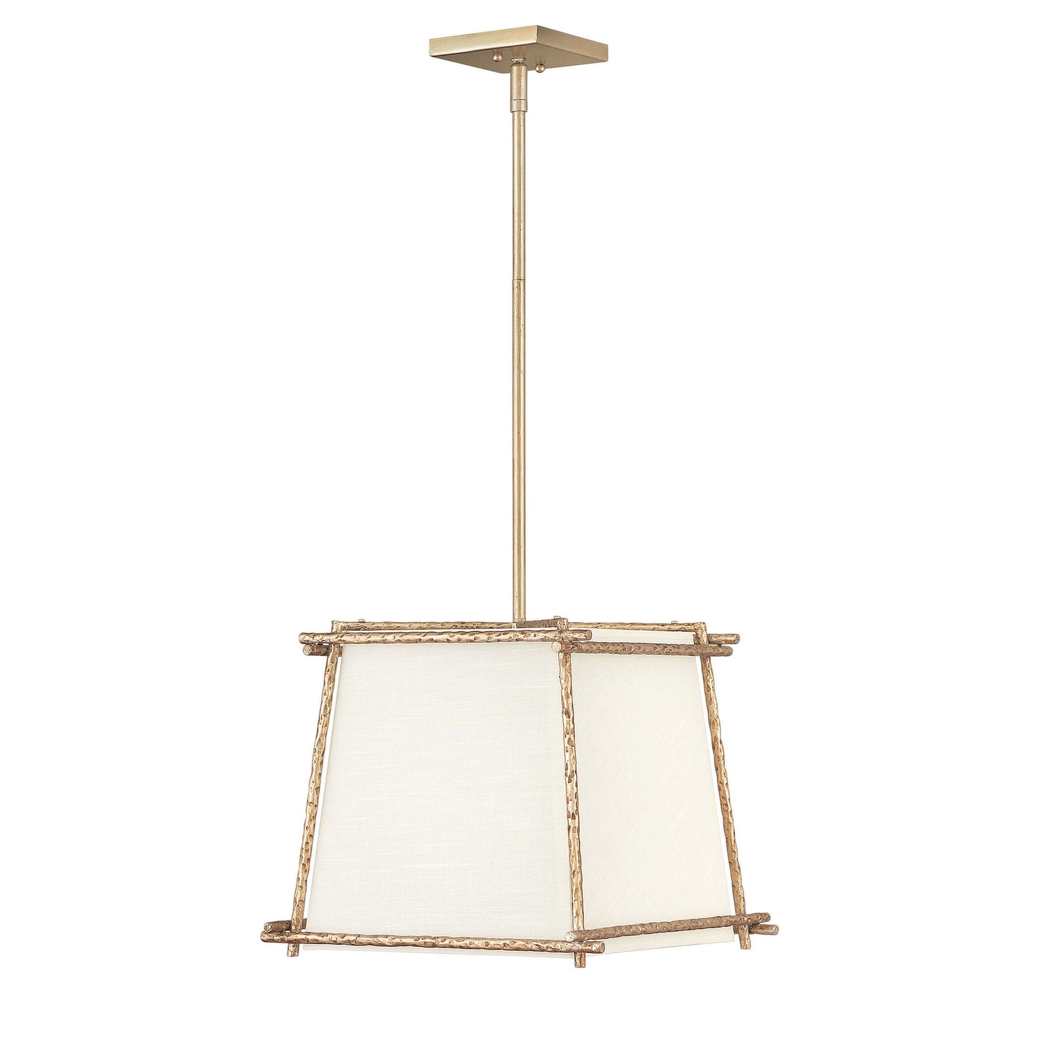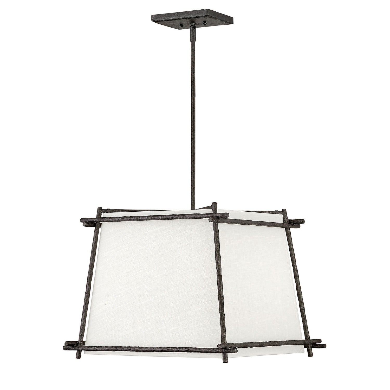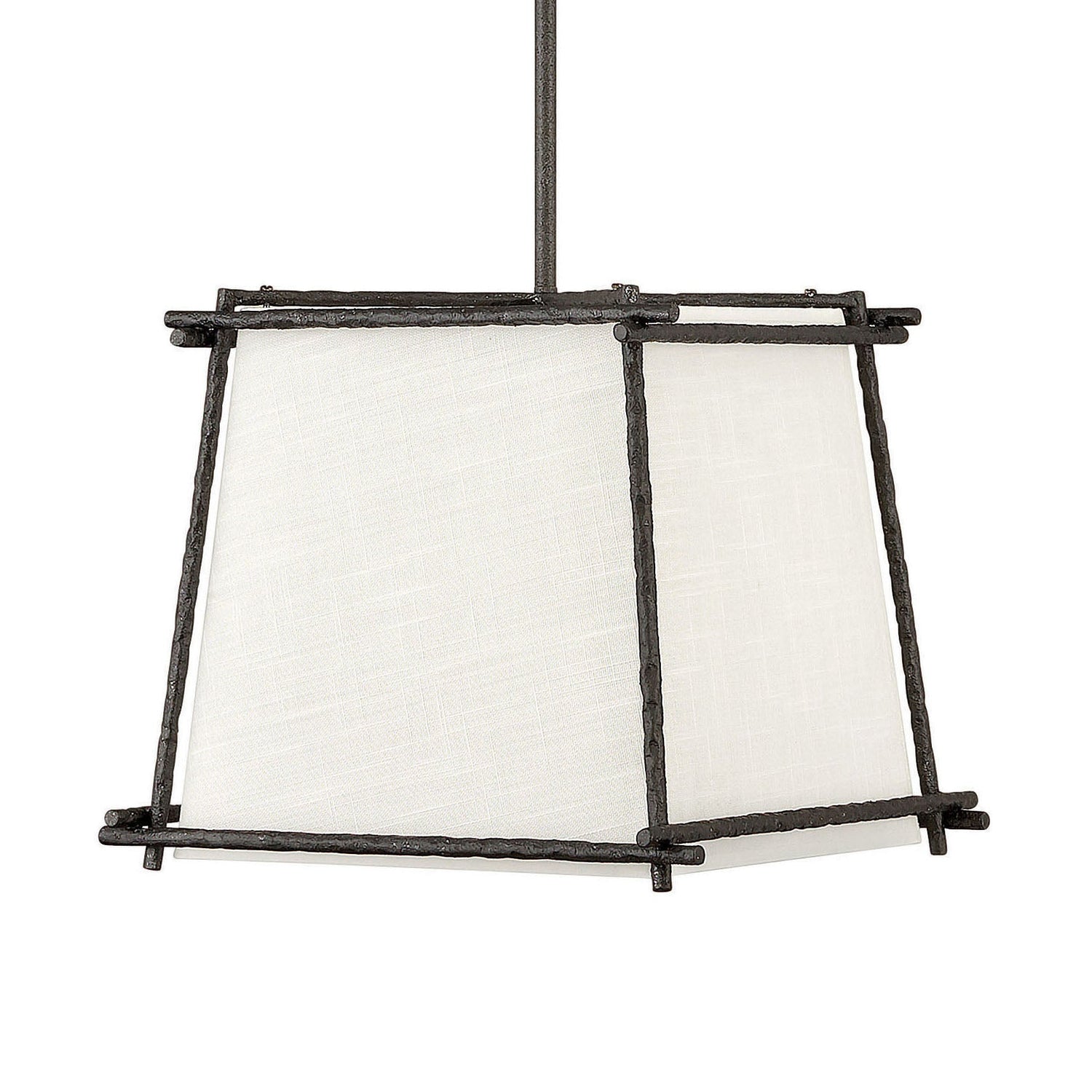 Tress approaches style from a different angle. The off-white textured fabric shade is bias-cut and framed in overlapping, hammered metal rods of Champagne Gold or Forged Iron. This simple structure translates into a sophisticated trapezoidal prism. Tress uses this natural look to add an organic feel to transitional decor.
