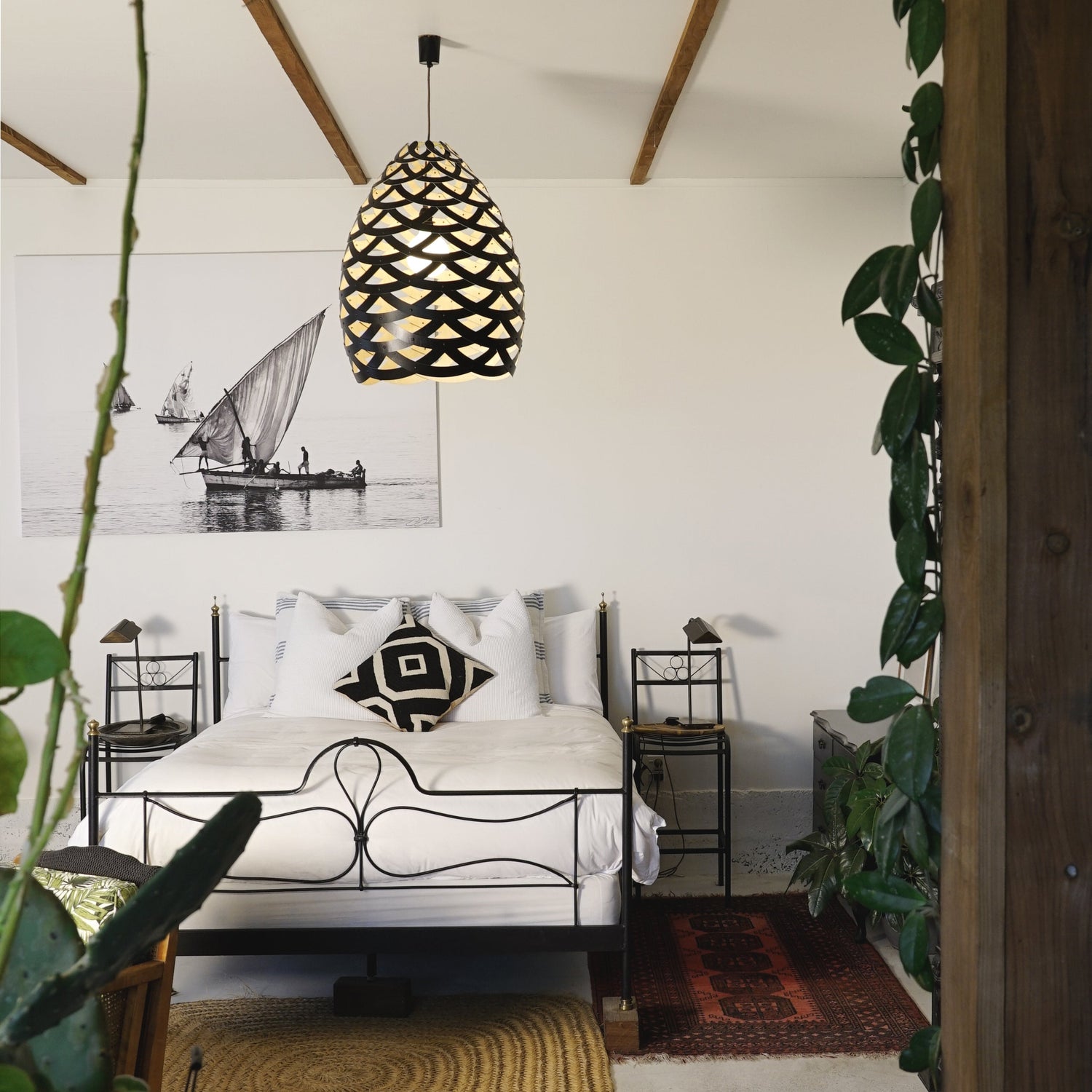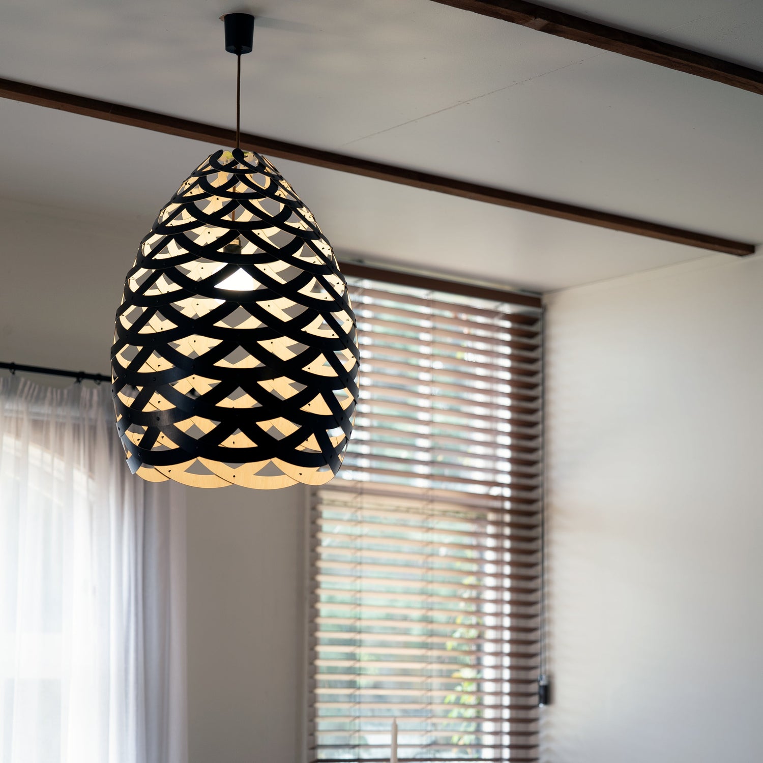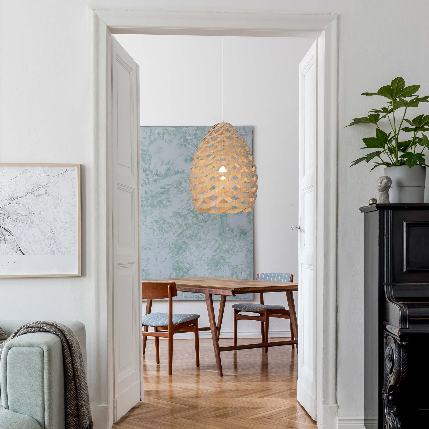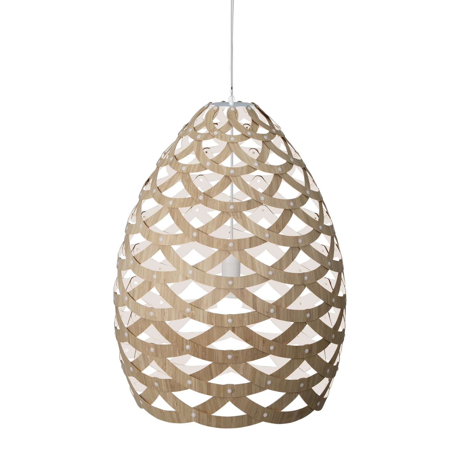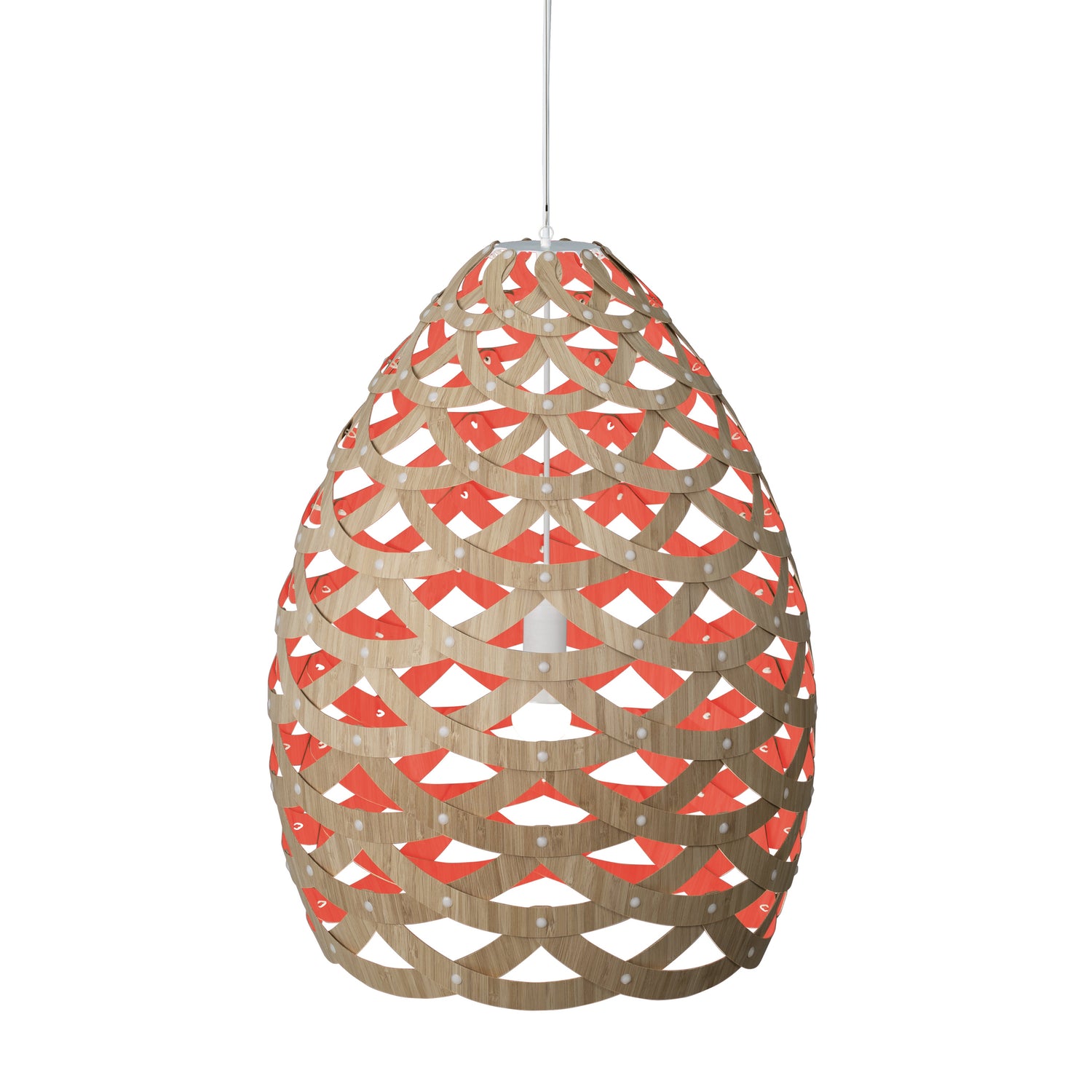 Inspired by the beauty of the namesake bird found in New Zealand, the TUI Pendant Light from David Trubridgebrings organic beauty to your well-appointed home. Half rings of bamboo are woven into a basket form that sits perfectly over a dining table, kitchen island counter or hanging in a stairwell orentryway. Outfitted with powerful LED lighting, this pendant brings a touch of visual appeal and texture to any living space and works brilliantly in a farmhouse, Scandinavian, or mid-century modern-inspired home.