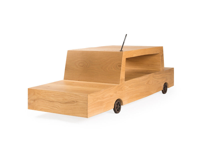Driven straight out of a child's drawing, this wooden car table is the most down-to-earth member of the Turbo Table family by Maarten Baas.