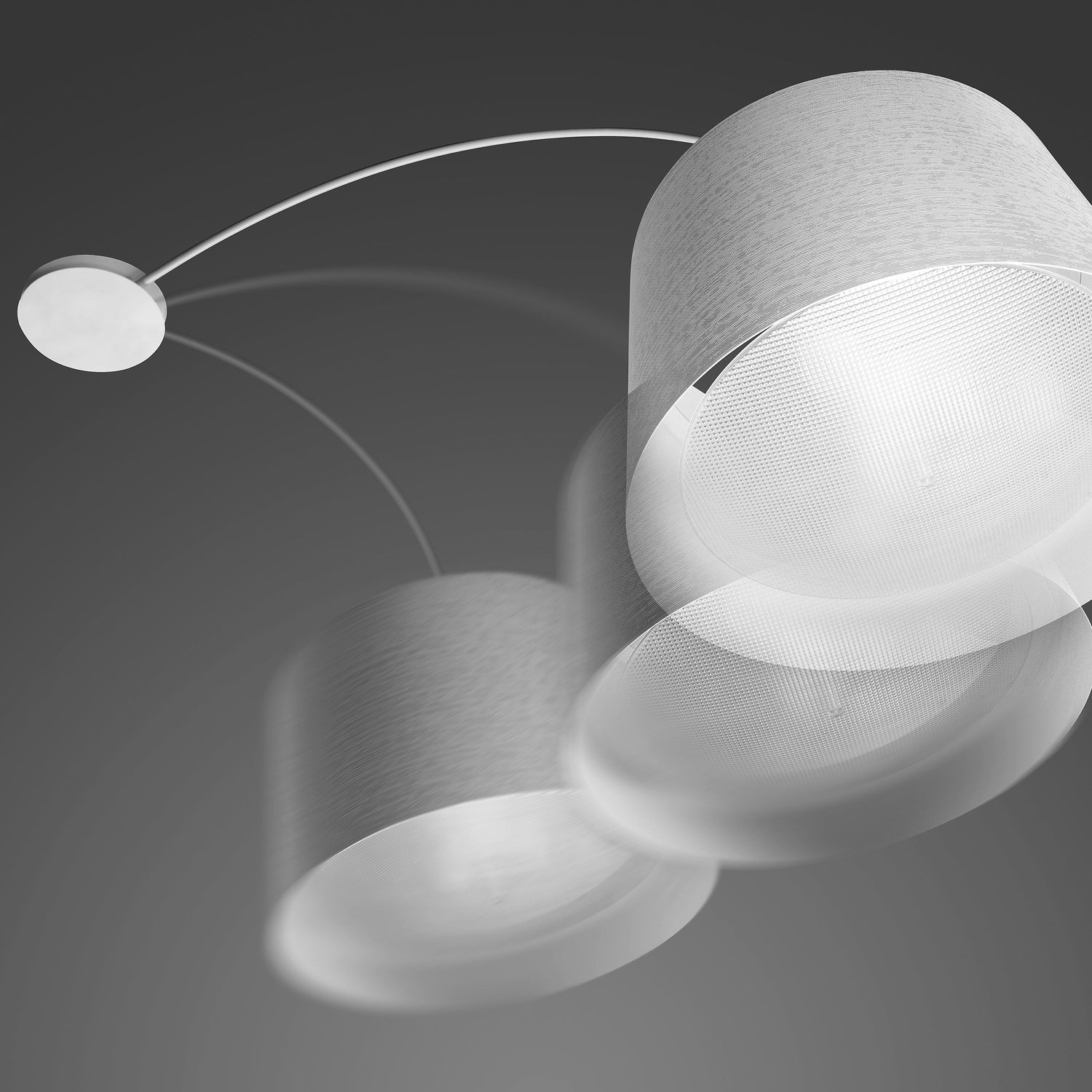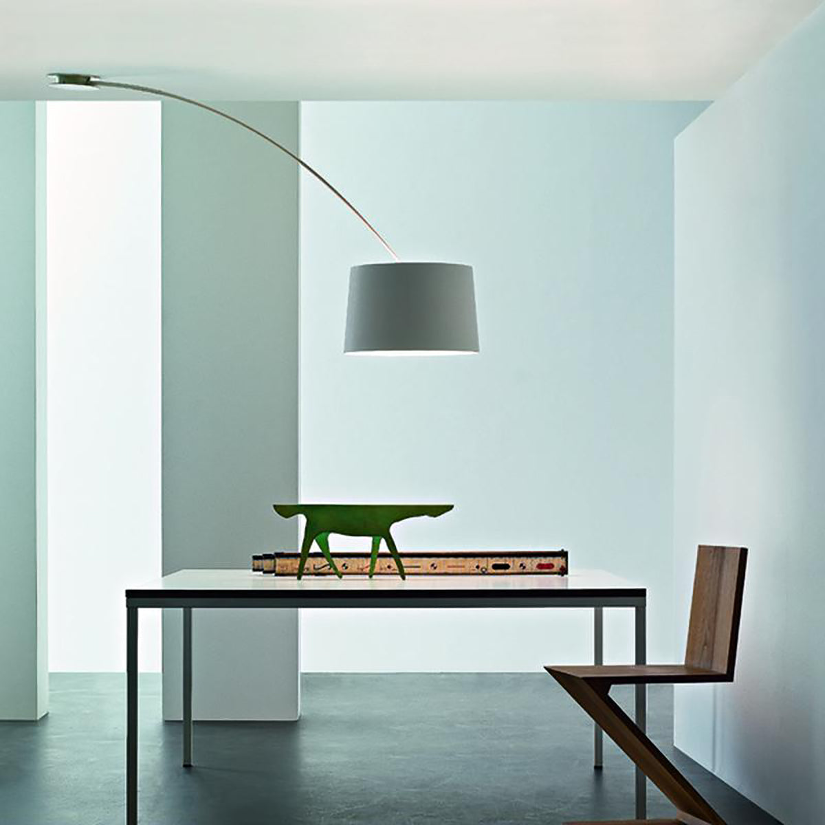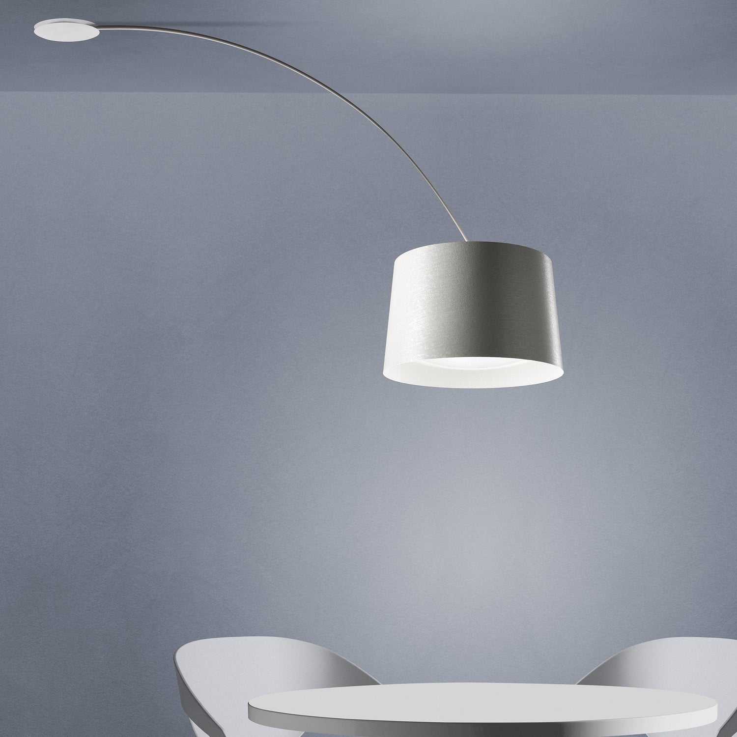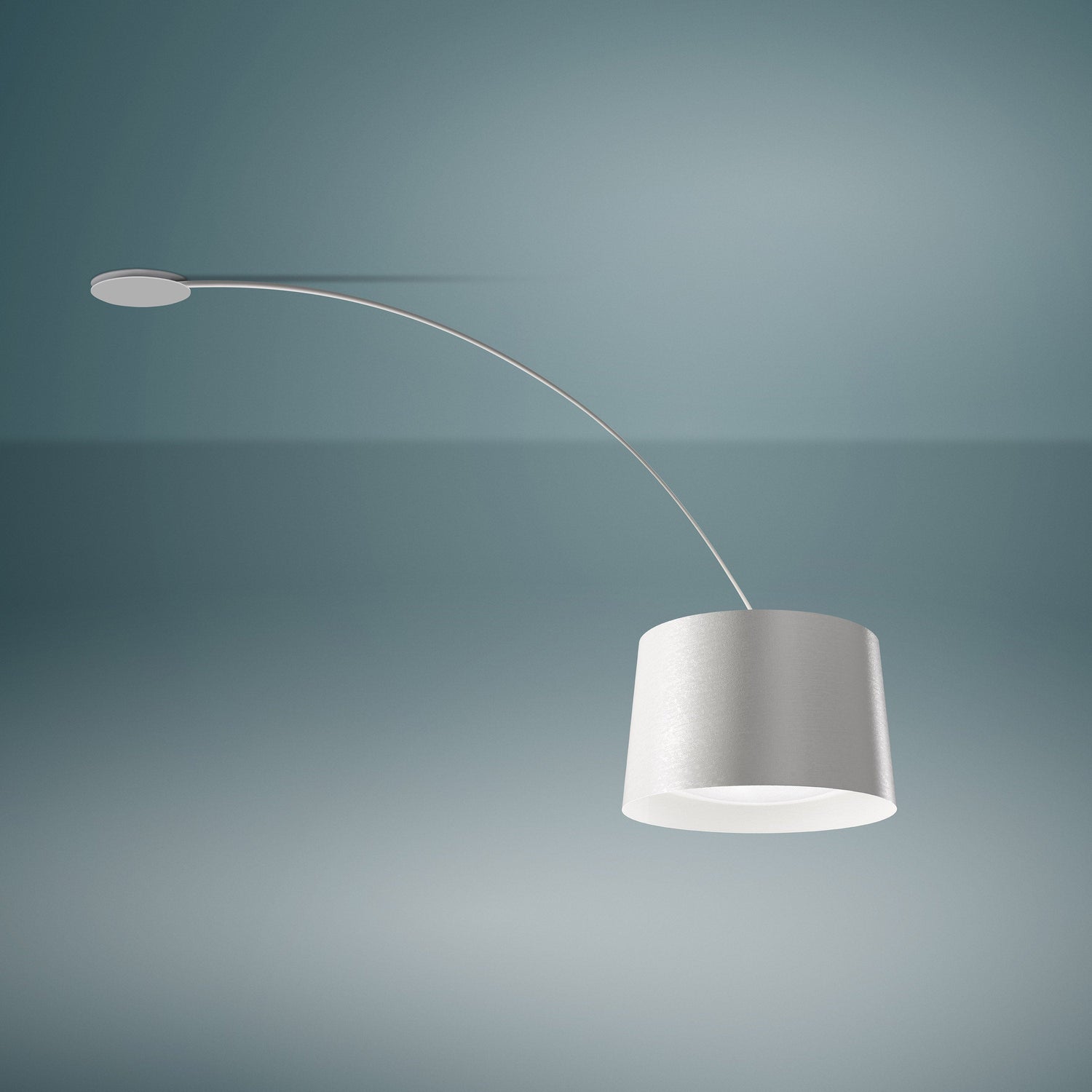 Foscarini and Marc Sadler's shared passion for research into new technologies has given rise to Twiggy, the iconic arched floor lamp which is available in an entire collection of lamps made of composite material on a lacquered fiberglass base. In the ceiling version, the diffuser support recalls the arched shape of the floor version. The support is secured in one point and can swivel by 360¡ã: an excellent solution to decentralize the light point, guaranteeing maximum flexibility. The diffuser guarantees direct lighting in the area underneath the lamp and thanks to the transparency of the upper protection disk diffuses efficient lighting by reflection. Available in two different colors, it can blend in seamlessly with any decor and style.