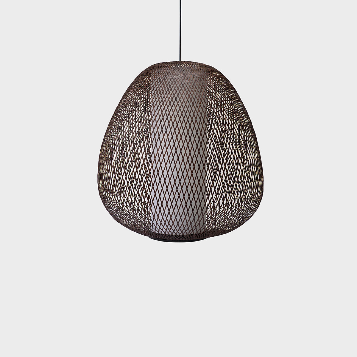 In London during the swinging sixties, a certain supermodel made her mark on the British capital and then set about taking the world by storm! The counter opposite of her waiflike figure, the Twiggy Egg pendant gleans its name from the material it's made from rather than its shape. The braided bamboo fixtures, in brown or natural, filter the light emitted through its central shade to cast playful patterns on surrounding surfaces. Ay Illuminate's design team, Ay Lin Heinen and Nelson Sepulveda, work with artisans to dream up these luminous creations. The fixtures are handmade in the truest sense of the word so longer lead-times may apply and slight variations in the profiles of each pendant may exist.