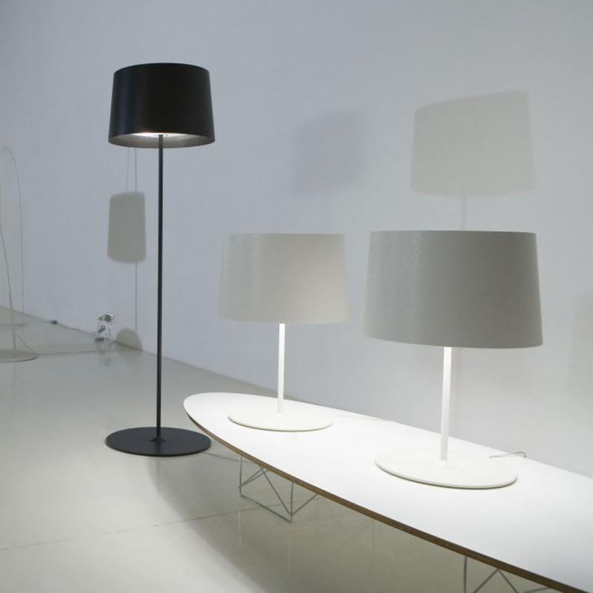 Foscarini and Marc Sadler's shared passion for research into new technologies has given rise to Twiggy, the iconic arched floor lamp which is available in an entire collection of lamps made of composite material on a lacquered fiberglass base. The reading and XL table version stand out for the successful synthesis of absolute formal simplify and strong personality: using the same diffuser and the same base as the floor lamp, and a rod that develops vertically, in two different heights. The simple flat disc of the base, which is light-weight and compact, can be inserted anywhere with ease. The diffuser guarantees direct lighting in the area underneath the lamp and - thanks to the transparency of the upper protection disk - diffuses efficient lighting by reflection, while at the same time guarantees good glare protection. Available in 2 different colors, it can blend in seamlessly with any decor and style.