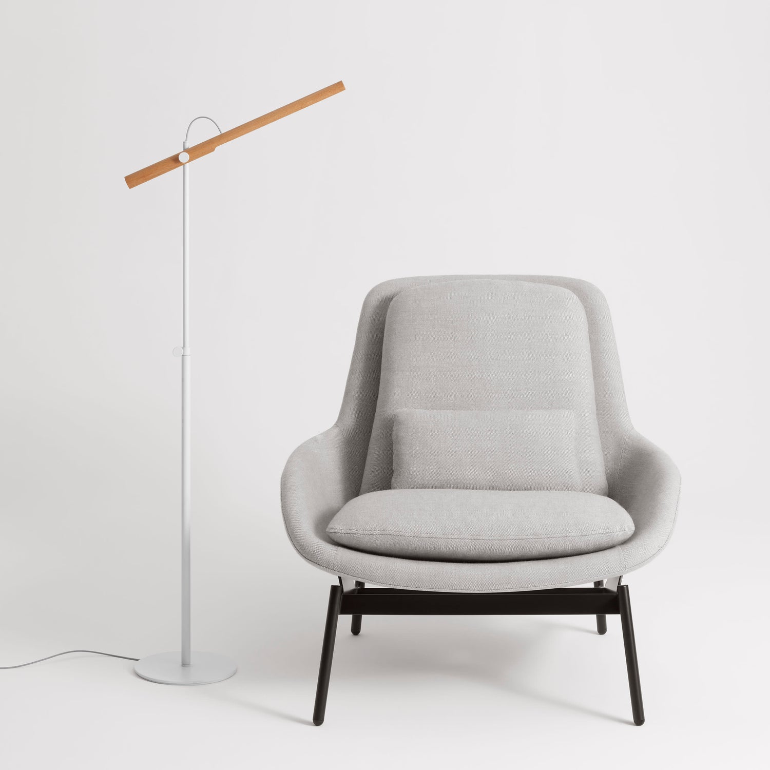 A conversation-worthy blend of materials and straightforward, contemporary design ensure the Type A Task Floor Lamp from Blu Dot stands out in any well-appointed space. Crafted from a mix of powder-coated steel and solid wood, this floor lamp offers a height-adjustable design to meet your needs. Easy to angle, the lighting source of the floor lamp can be adjusted to provide direct light in a variety of directions. Station by your favorite lounge chair for a well-lit reading nook in your living room or master bedroom, or use as a task lamp in your at-home work space or office.