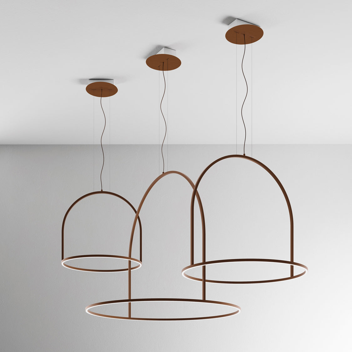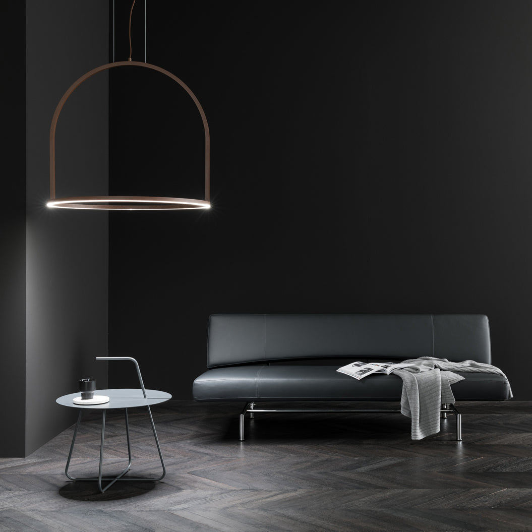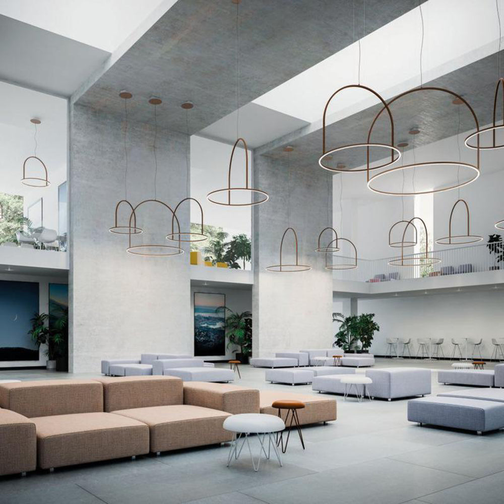 Collection consisting of wall lamps, ceiling lamps and suspended lamps in Aluminum. Available in several colors and sizes. Built-in LED dimmable light source.