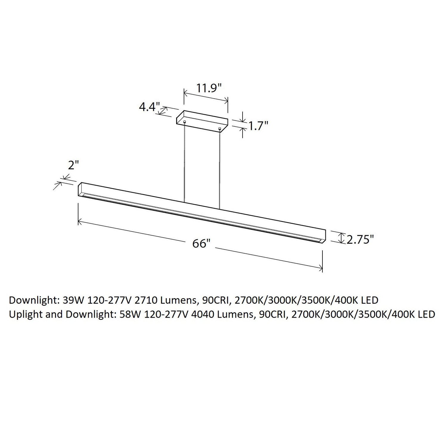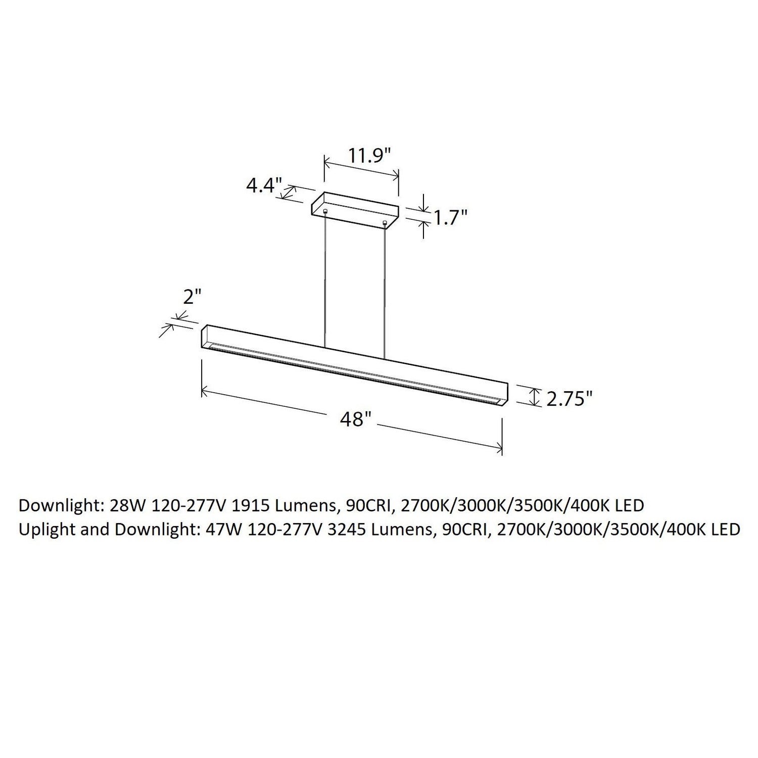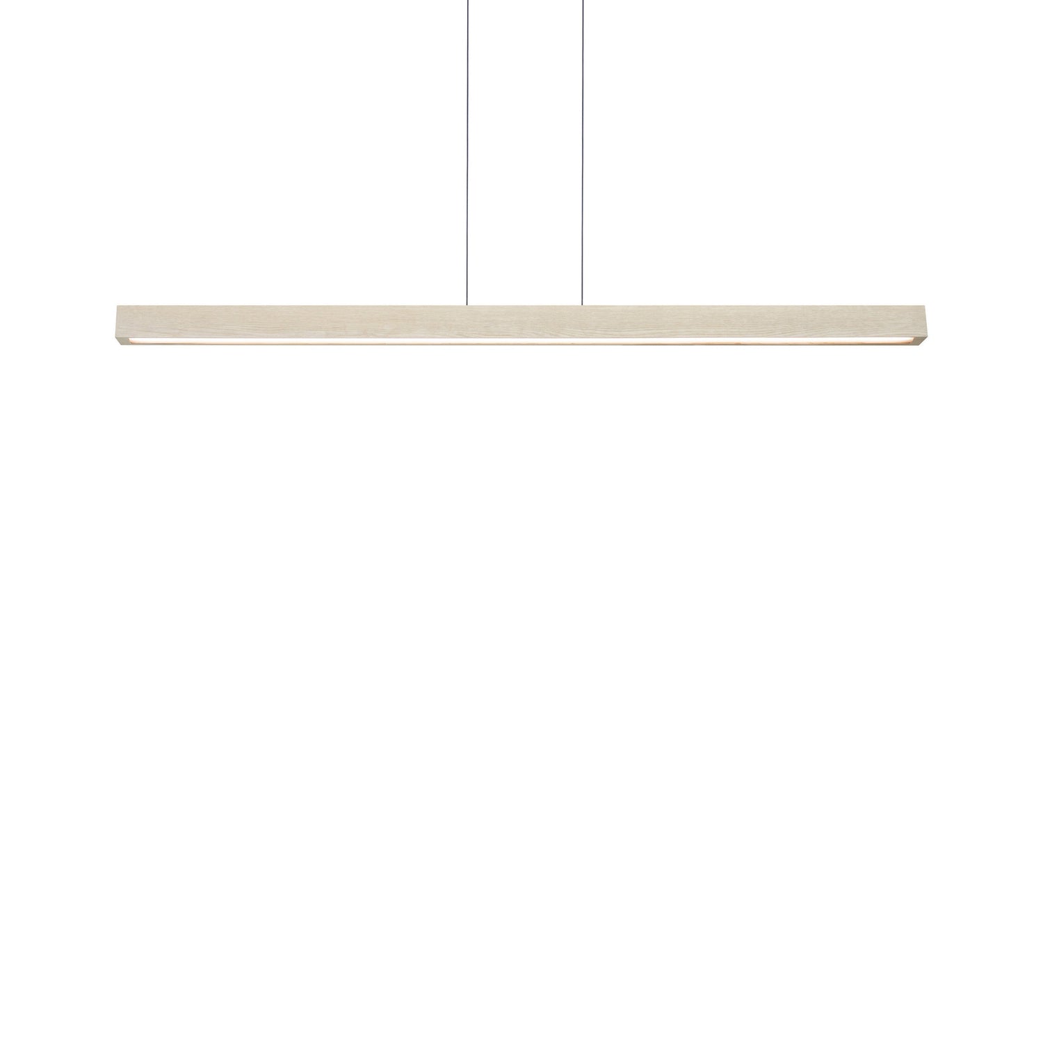 Under the surface of Cerno's minimal Una Pendant lives innovative technologies. Purposefully unadorned, the simple linear frame showcases the natural beauty of the solid wood construction. Recessed LED light sources offer both downlight and indirect uplight (optional) to the surrounding area. Available in 48-inch and 66-inch lengths, this linear pendant is ideal over a kitchen island, a long dining table or in an office.