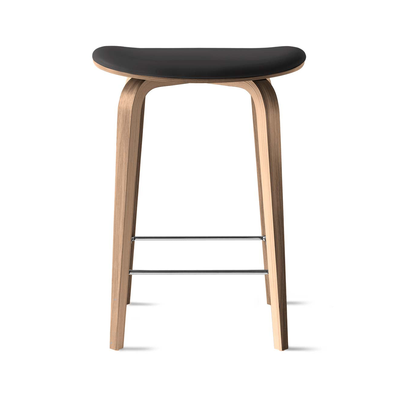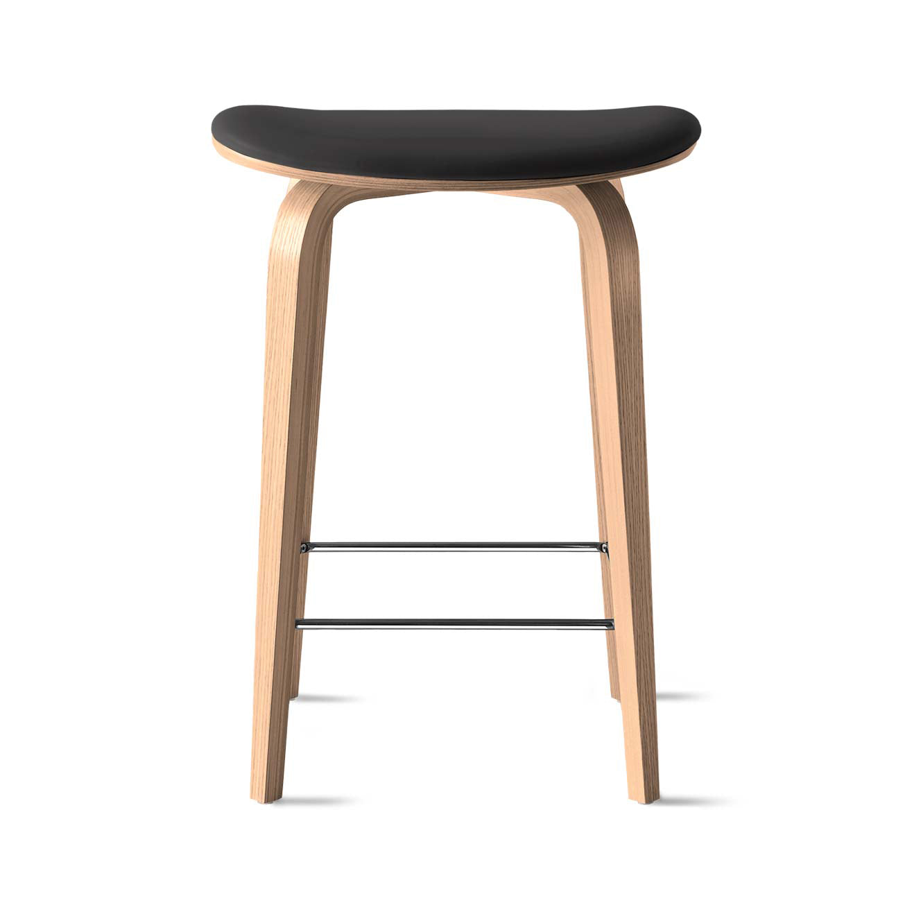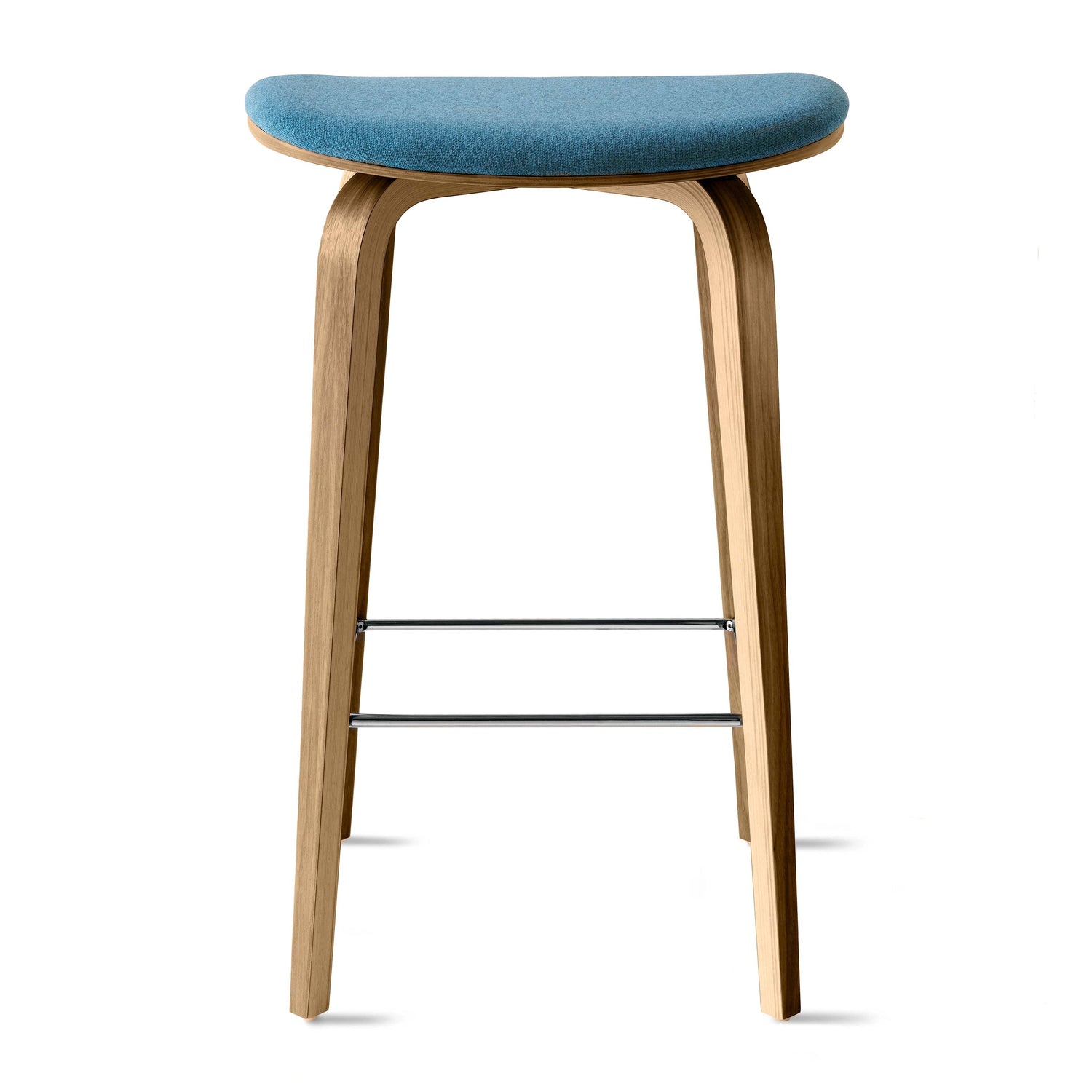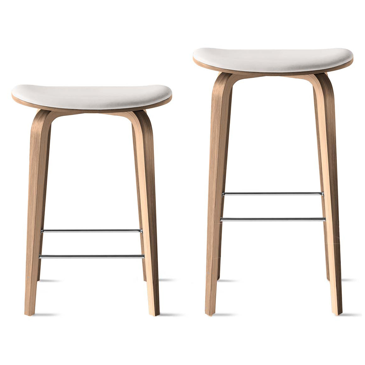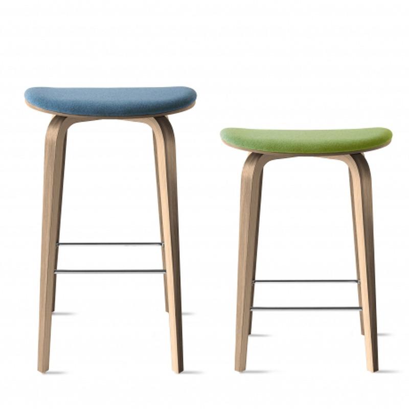 The latest design from Benjamin Cherner. The Under Counter Stool features a molded plywood seat with laminated wood base and a bright chrome footrest. Available in bar and counter heights. Upholstered seat pad is available in fabric or leather.