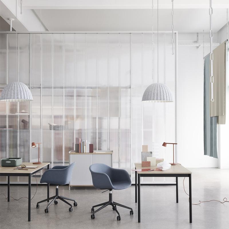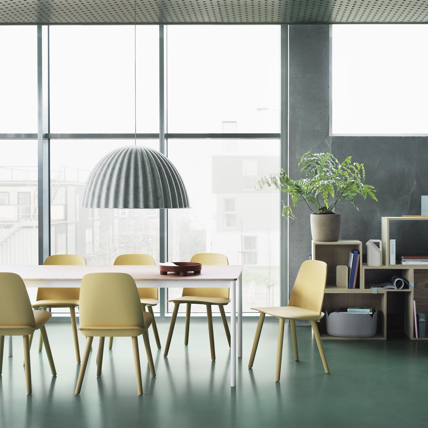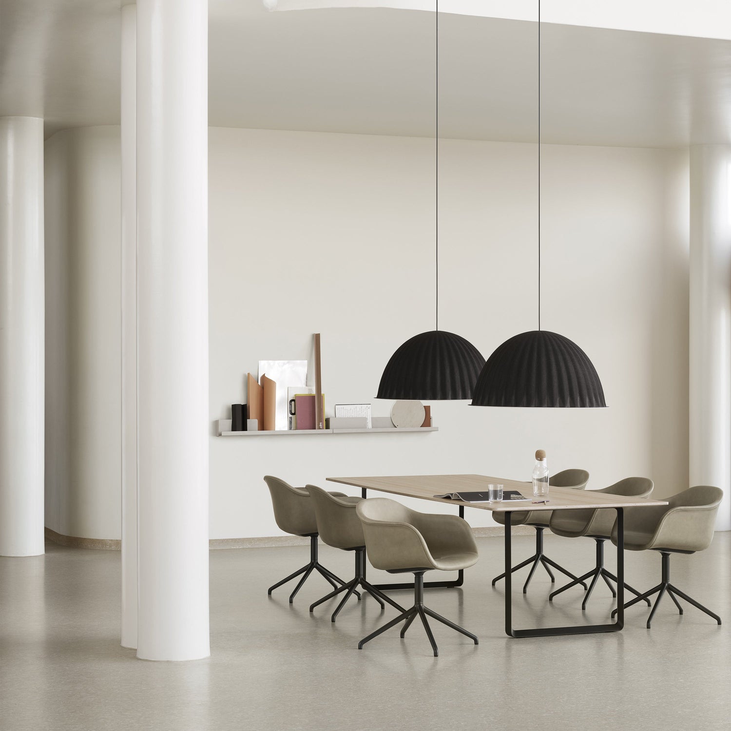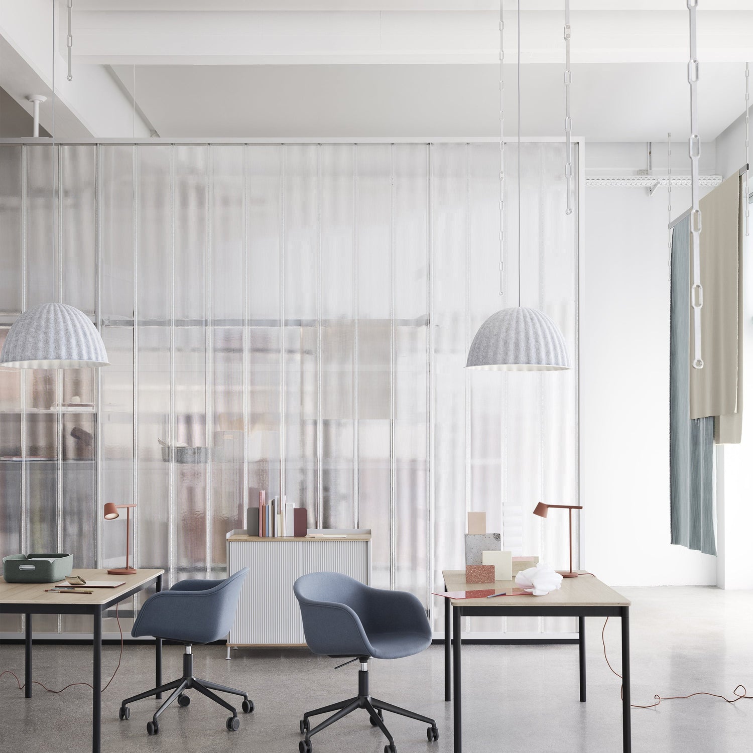 The Under the Bell Pendant by Muuto is a chic, contemporary pendant. Sustainably crafted with fibers from plastic bottles, this refined, elegant piece lends a soft, generous ambience to the living room, study, or bedroom.