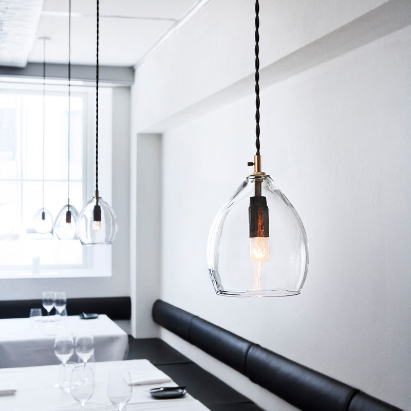 Seeing the light takes on a whole new slant with the Unika Pendant Light in the Stratos Collection of lighting. The mouth-blown shades in gray or clear glass dress up the simple light source to offer a cheery dash of style to its corner of the design canvas. Anne Louise Due De Fonss and Anders Lundqvist conceived the Unika, which was originally created for a famed Copenhagen eatery. Now you can make it uniquely yours.
