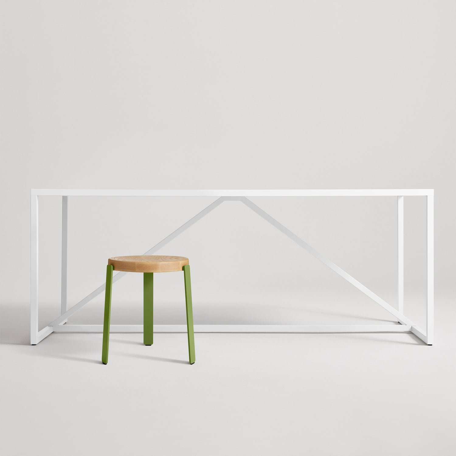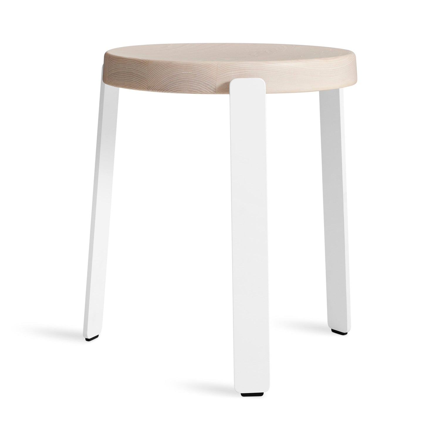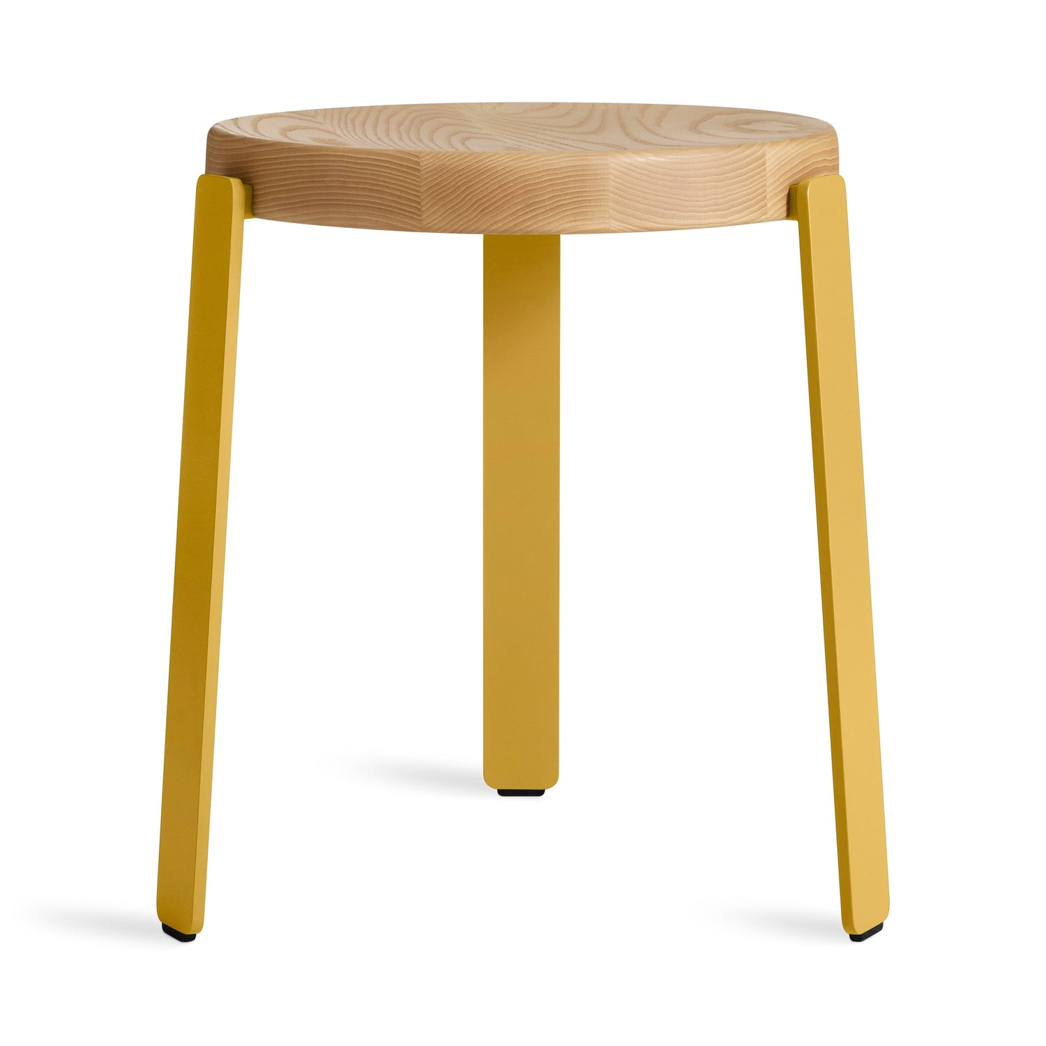 Sit your butt down. Powder-coated steel legs grip a chunky wood top to form a subdued silhouette and a simple stool that works wherever. Three legs provide a sturdy tripod of color and delight. Stackable and practical.