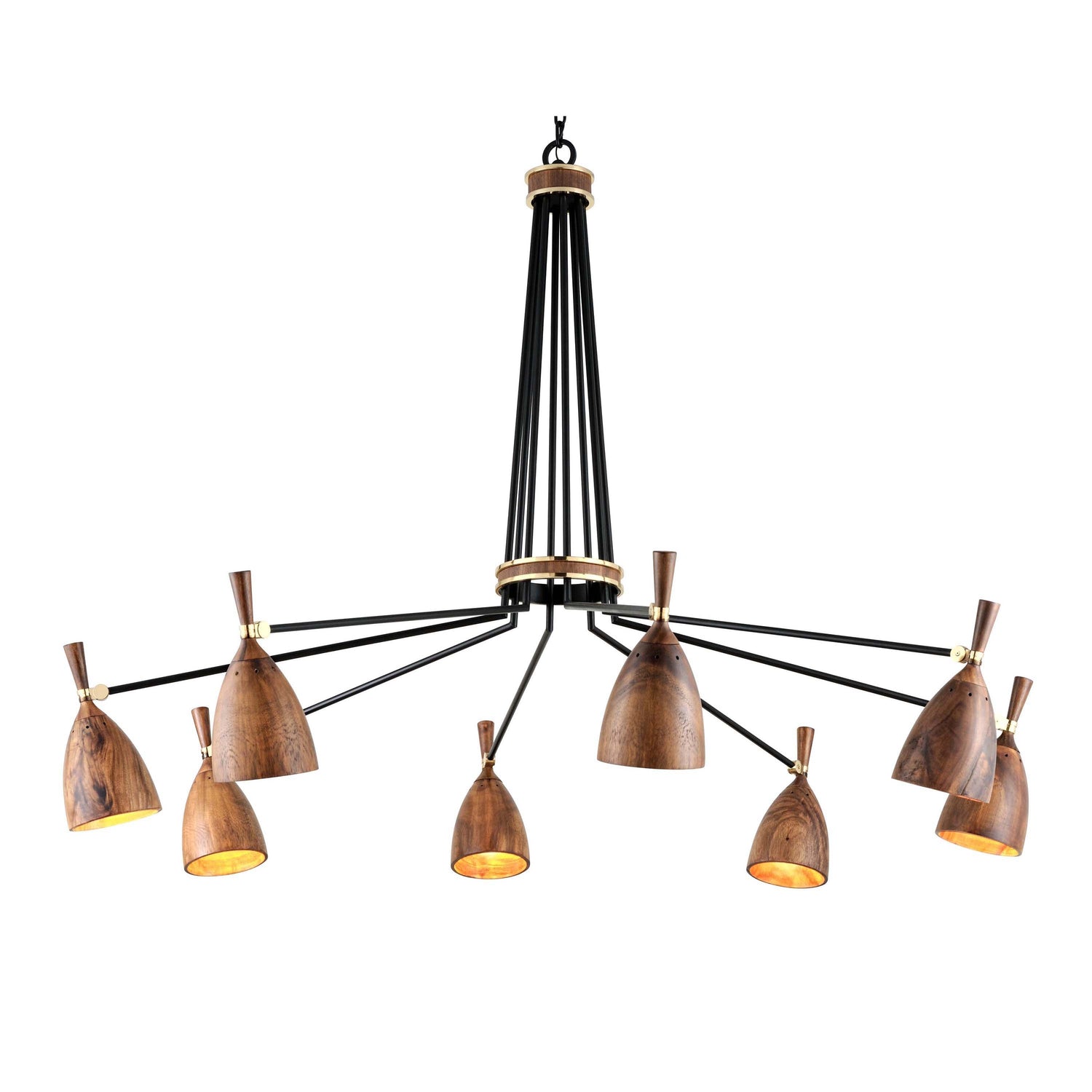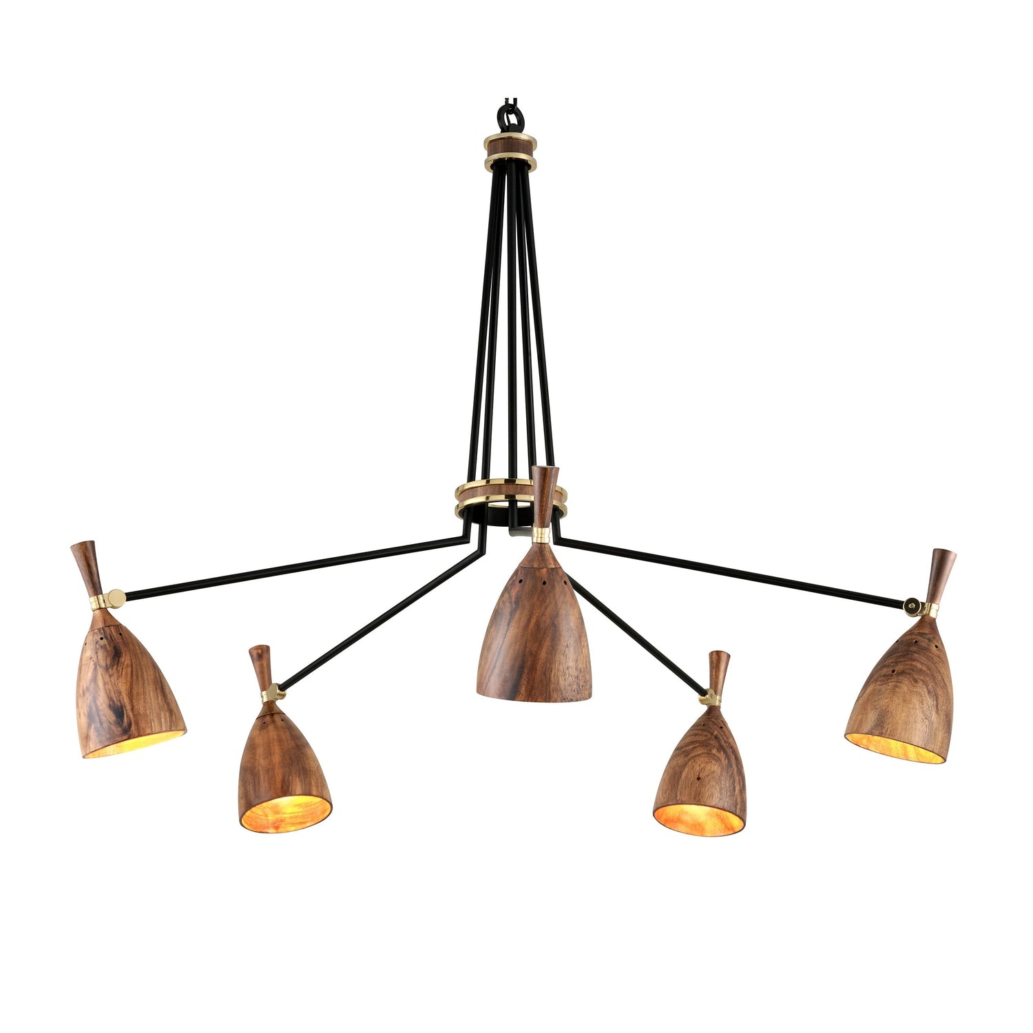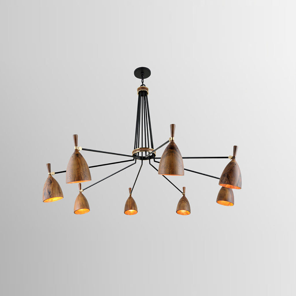 Inspired by the sculptural light fixtures made popular in Italy during the '50s by the likes of Gio Ponti, these fixtures have a twist of their own with the unexpected use of acacia wood shades. The depth and texture allows these fixtures to become a design classic in their own right.