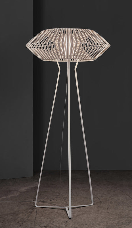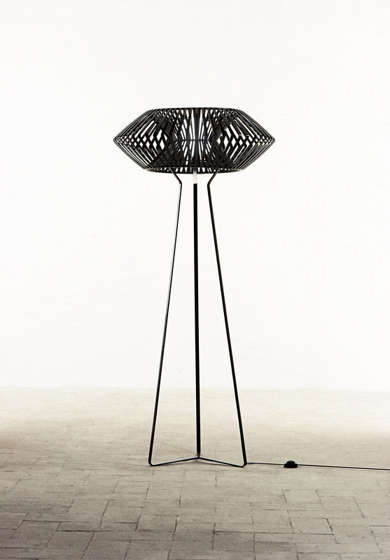 This lamp was designed by Hector Serrano. A spatial shape, yet near and tangible, that thrills and inspires a sense of identity through the extraordinary and fantastic. With the help of the plastic injection technology they developed a lighting collection which, through its ribs combined with the geometrical form, immerses us in a world of dreams.