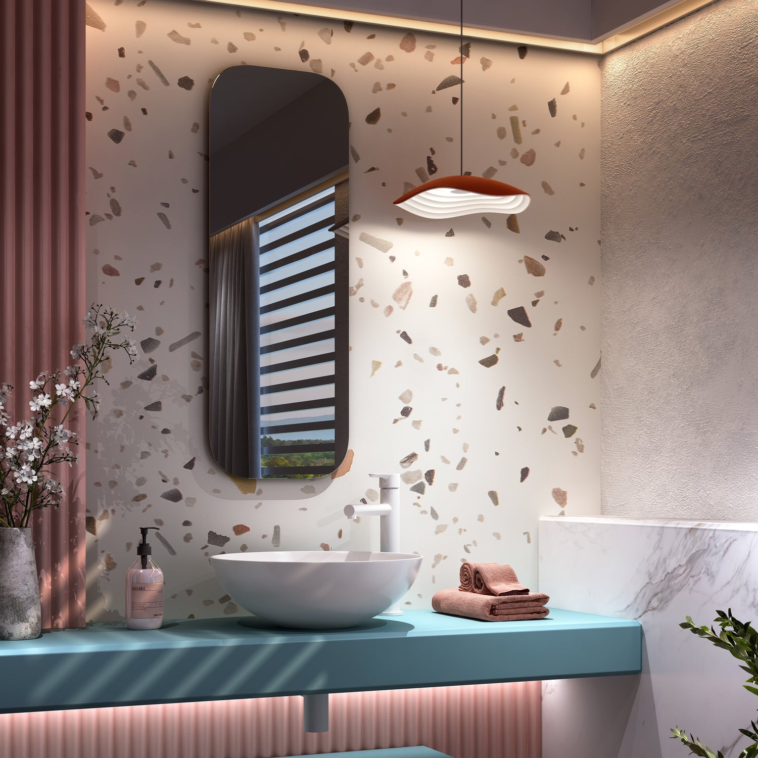 Inspired by the ripples of waves oscillating from the currents of the Mediterranean, the Valentina Pendant Light from Bover brings a contrasting design that is sure to delight guests and family alike. Originally designed in 2020 by Alex Fernandez Camps, this pendant light is crafted from aluminum and iron and features a contrasting shade and diffuser for ultimate appeal. Hang this pendant along your kitchen island for a unique lighting design or position above a sink in your half bath for a subtle touch of lighting for guests to enjoy.