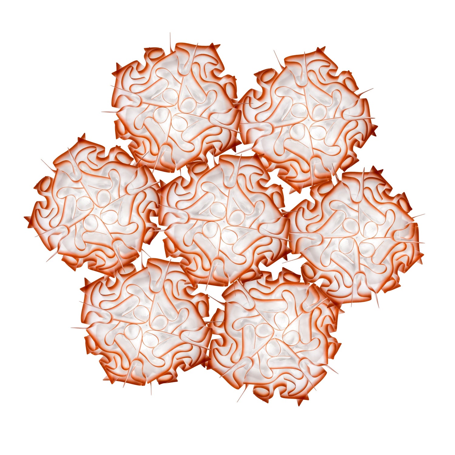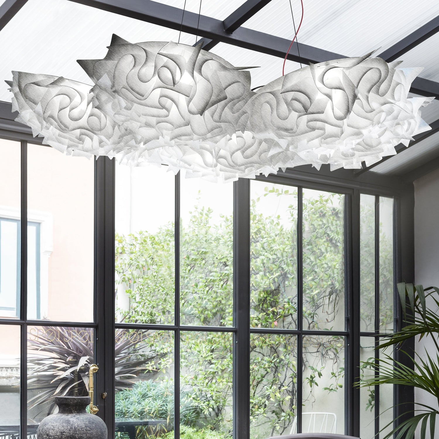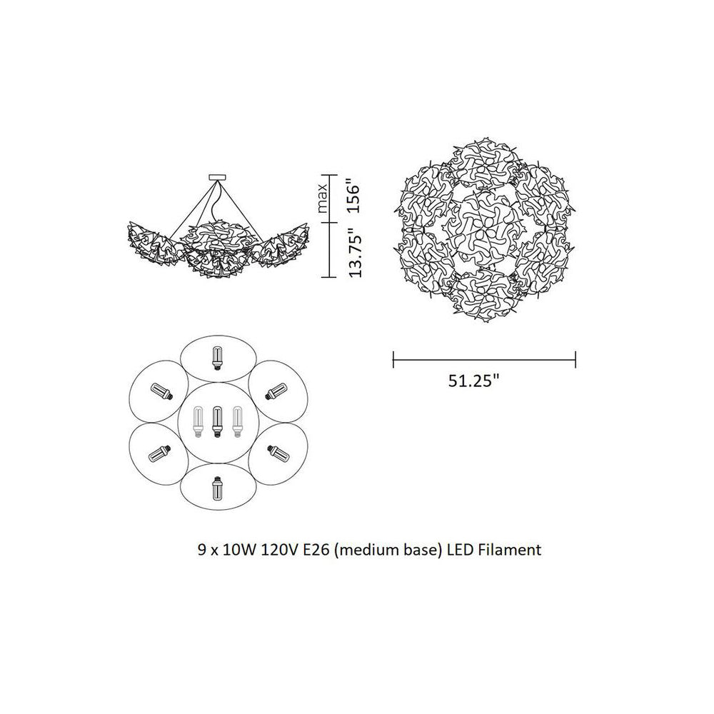 Like a tailor-made dress, this piece is assembled entirely by hand. When installed it gently 'clothes' and 'amplifies' the light. The magnetic base and its range of colors and sizes makes it extremely versatile. Produced in luminous Opalflex, Metalized version (Gold, Silver, Copper) or in the Prisma version made from the magical Lentiflex.
