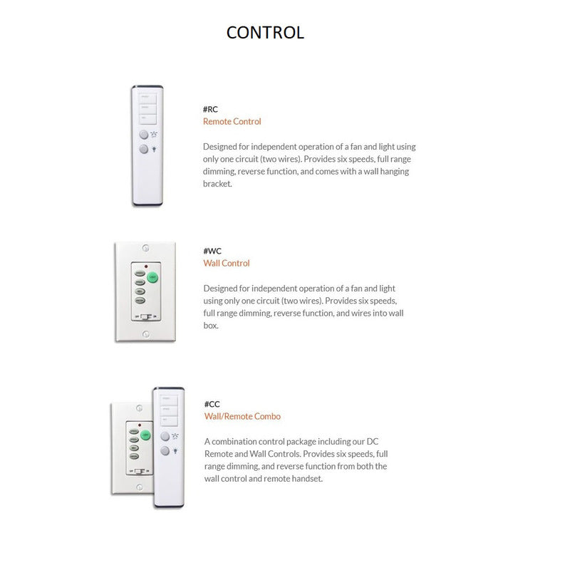 - Available in Remote Control, Wall Control or Wall/Remote Combo Control