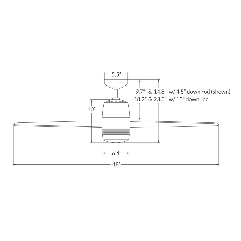 - Ships with 4.5 and 13 inch downrods
