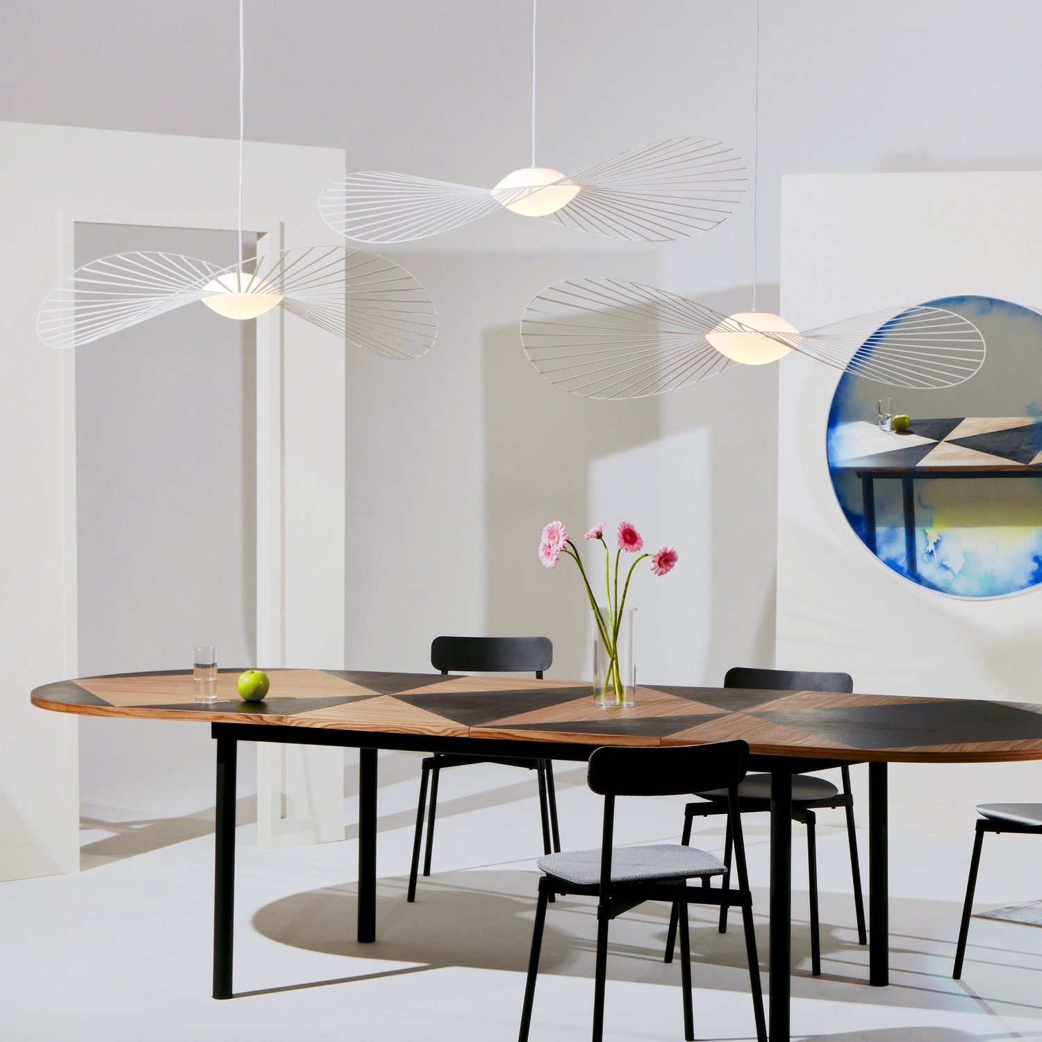 A highly technical piece of sophisticated design, the Vertigo Nova Pendant Light from Petite Friture brings strikingly sophisticated contemporary design to your well-appointed home. Showcasing a vast veil of graphic lines crafted from steel mounted atop a sphere of hand-blown glass, this balanced and breathtaking lighting design is outfitted with LED technology to offer a softly emitted light from overhead. Delicate and light, but impactful in stature, pair multiple of these pendants above your dining room table for a well-lit evening or morning routine, or suspend in your favorite living or lounge space for a conversation-worthy lighting design ready to great friends and family alike.