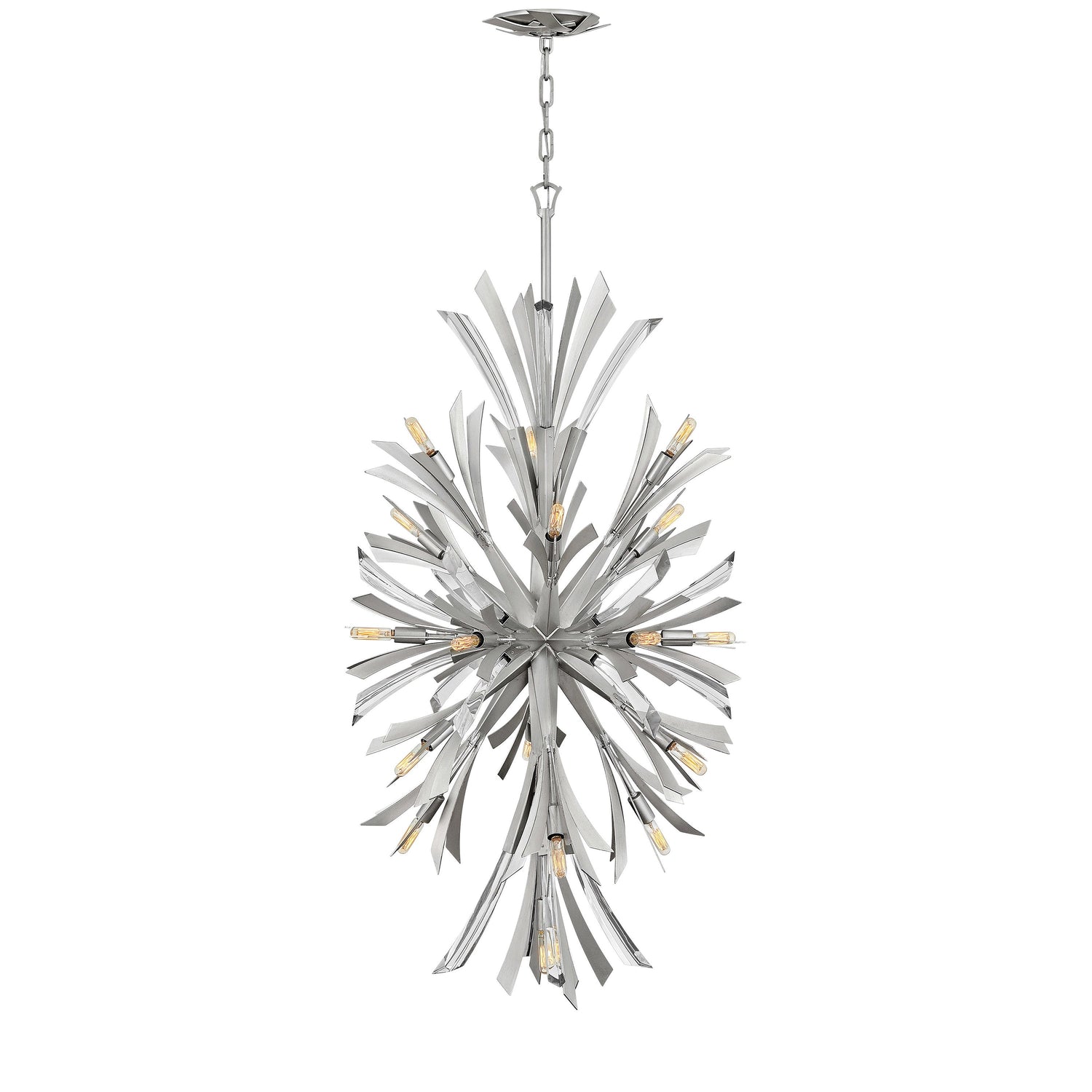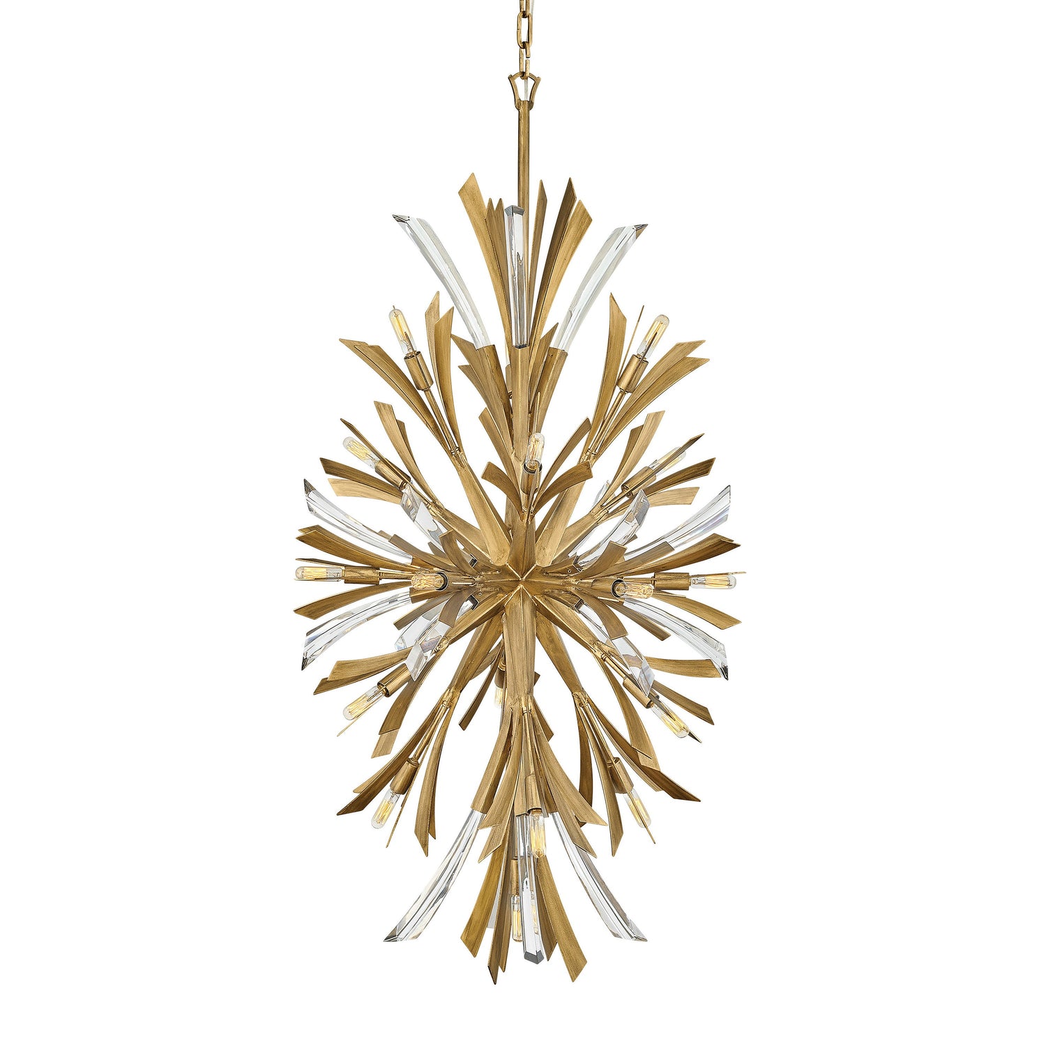 Vida's modern design bursts with a flourishing style that is both highly dramatic and finely sculpted. A statement piece with crystal accents and unique canopy detailing, Vida injects a thrilling dash of contemporary inspiration to its surroundings in a Burnished Gold or Glacial finish.